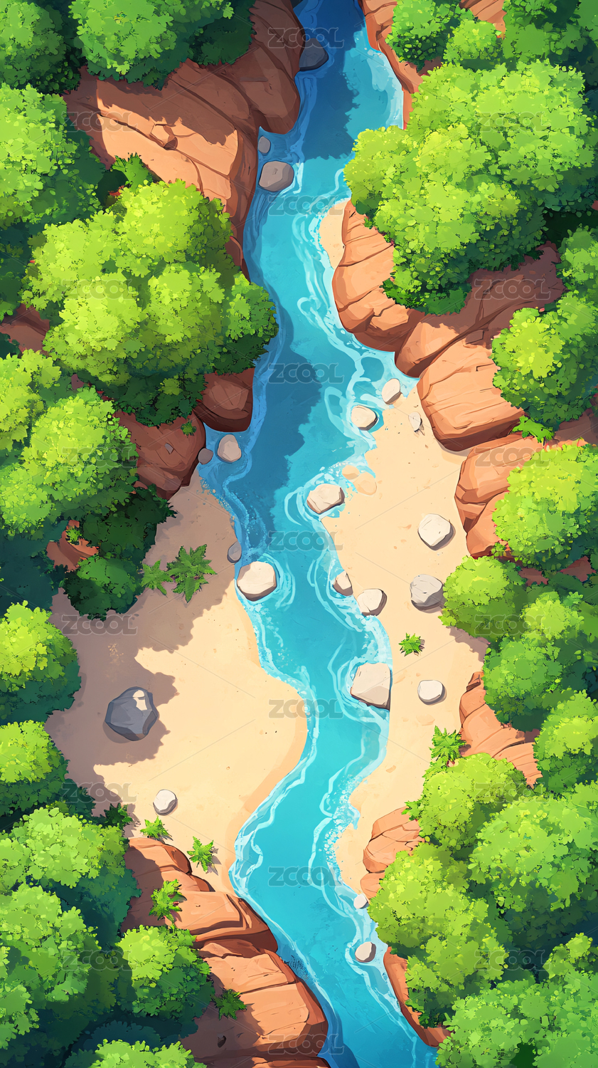 3D,插画,AI数字艺术,背景,壁纸,河流,地图,奇幻,森林,蜿蜒