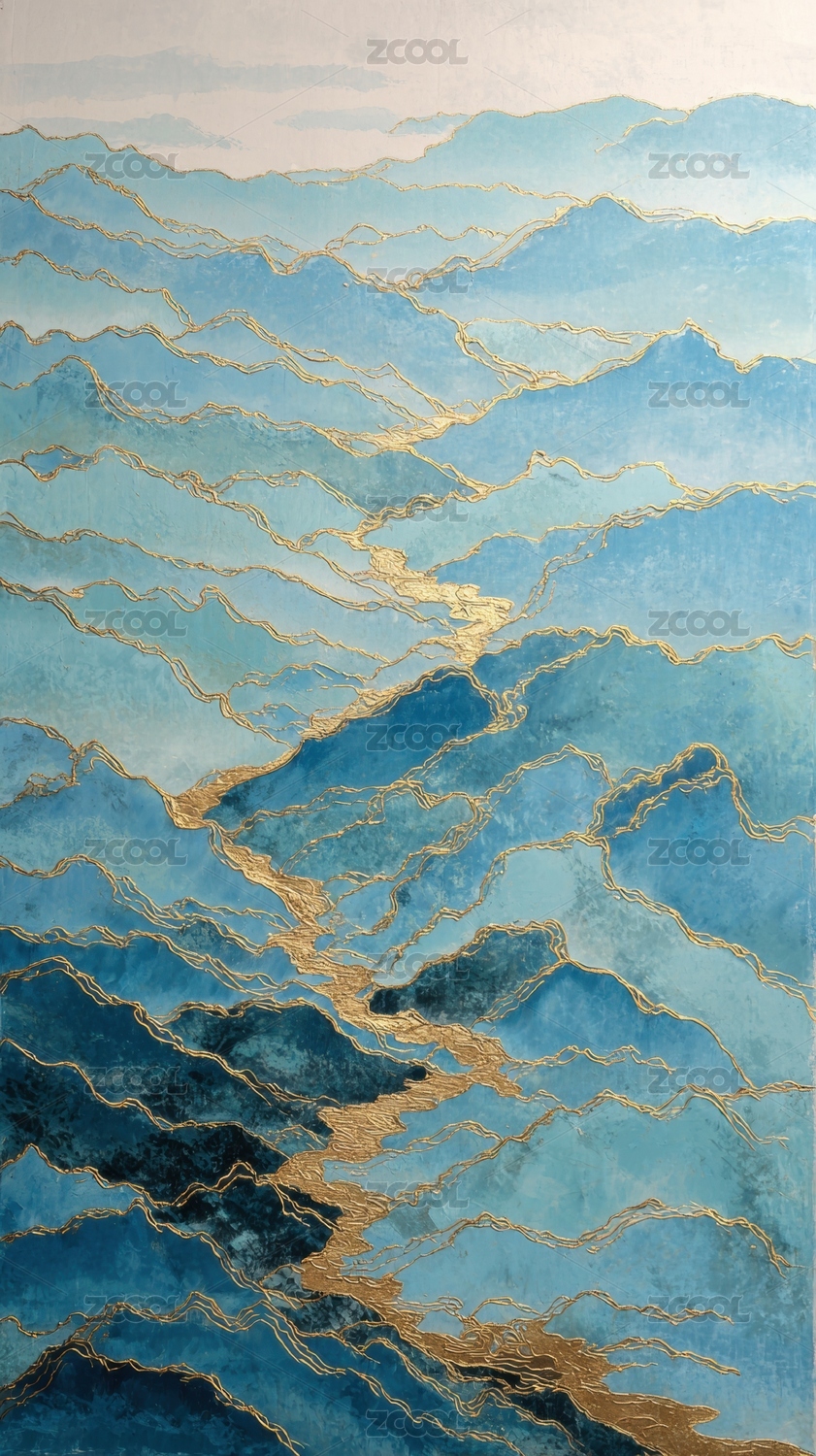抽象山水画蓝金相间