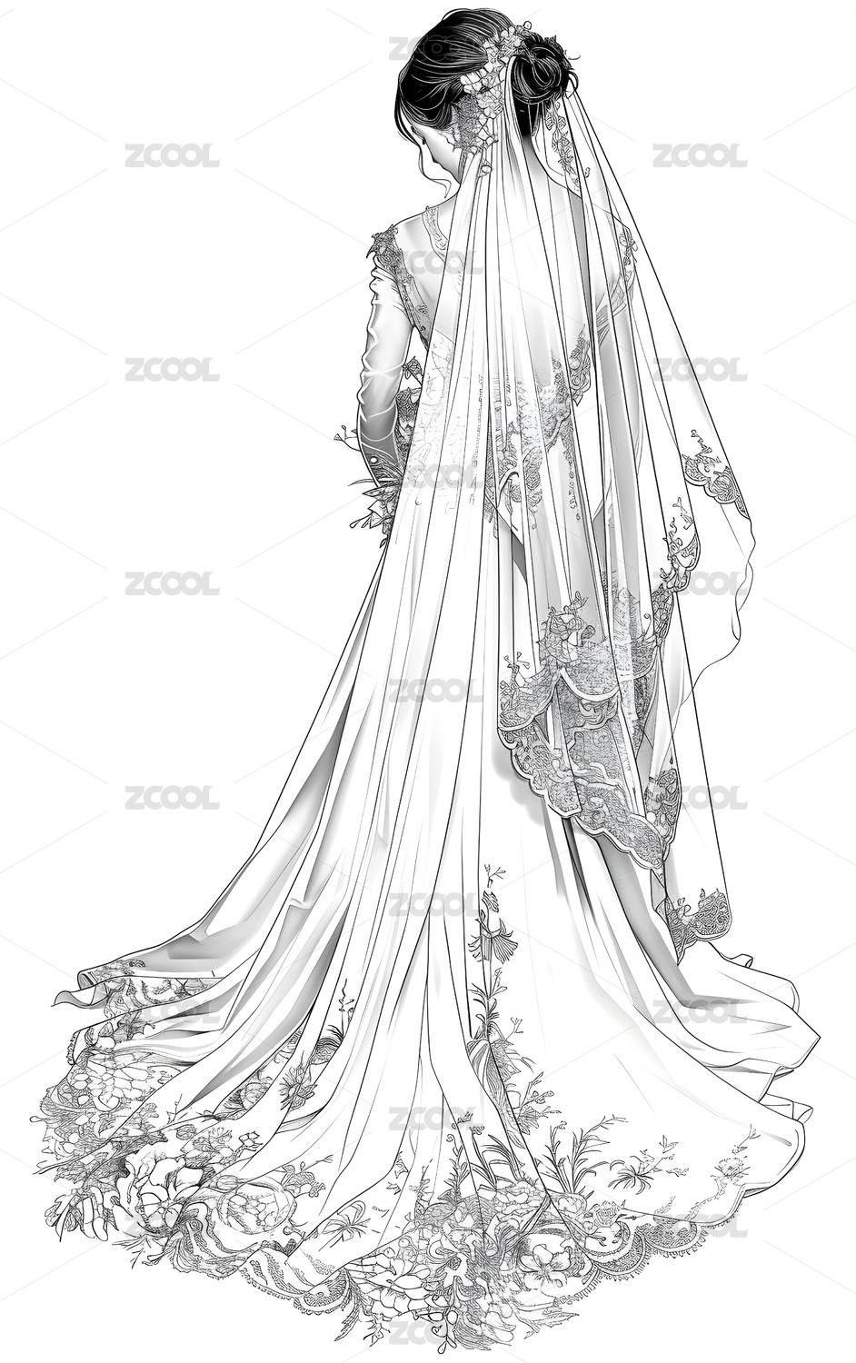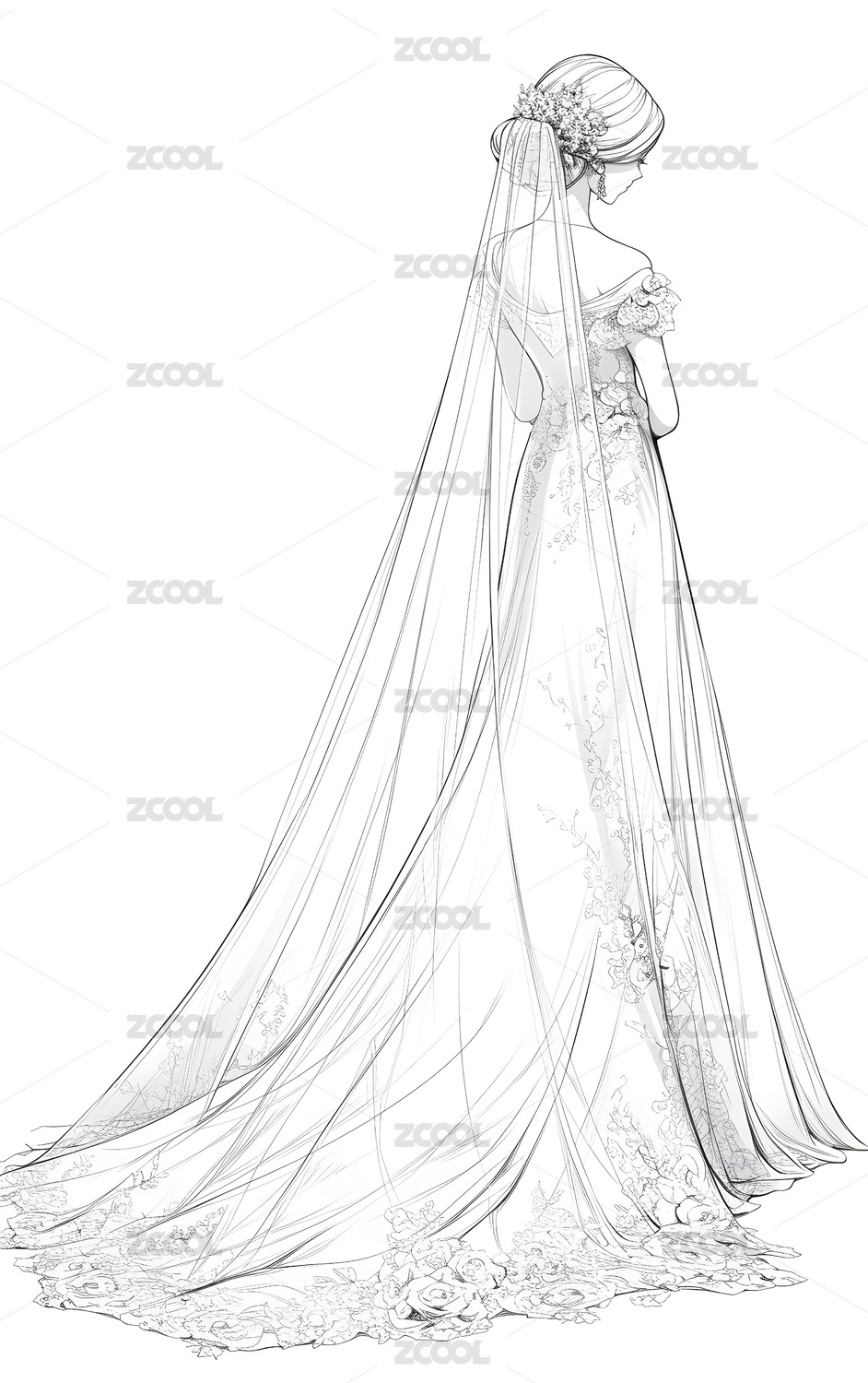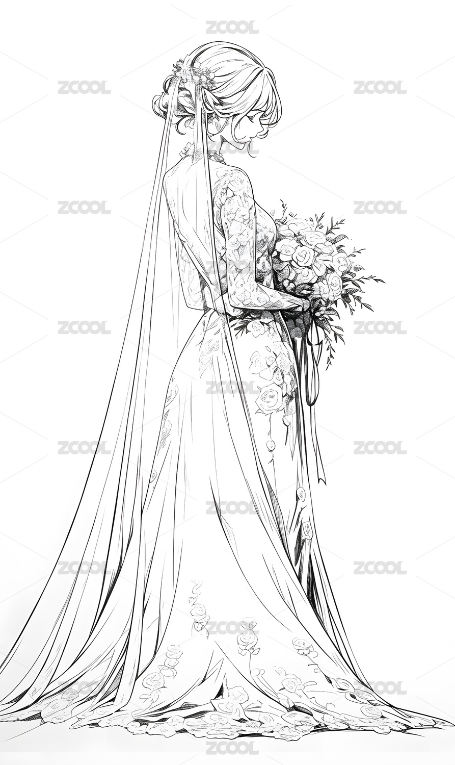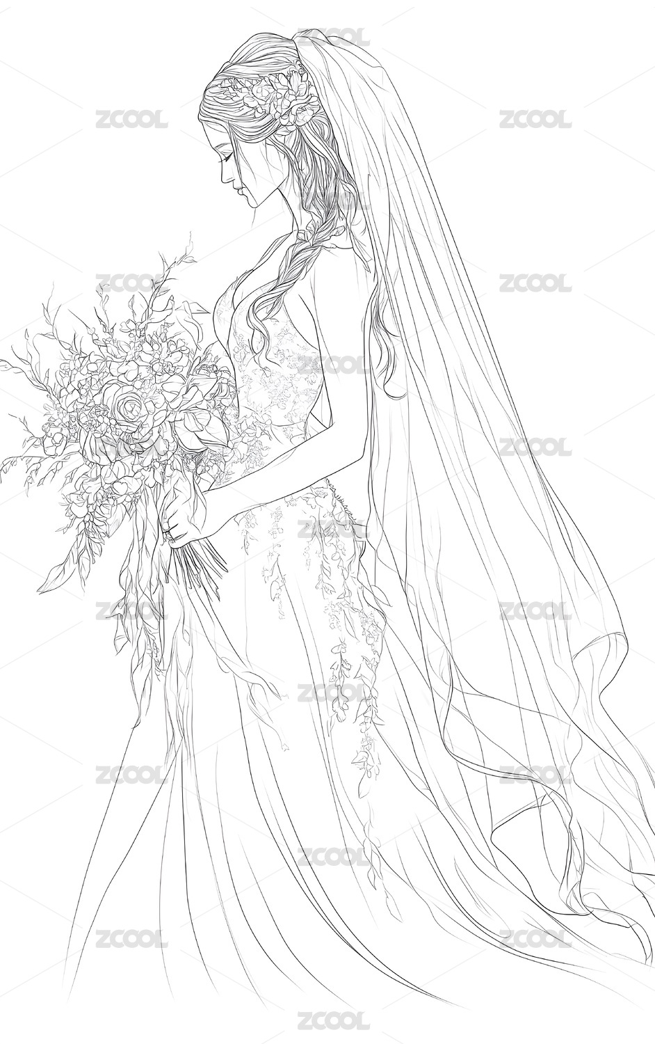 美丽婚纱 时尚插画线稿