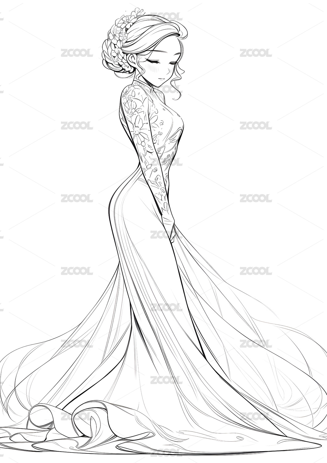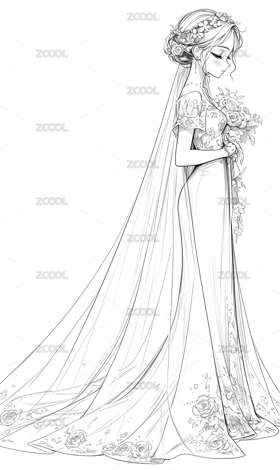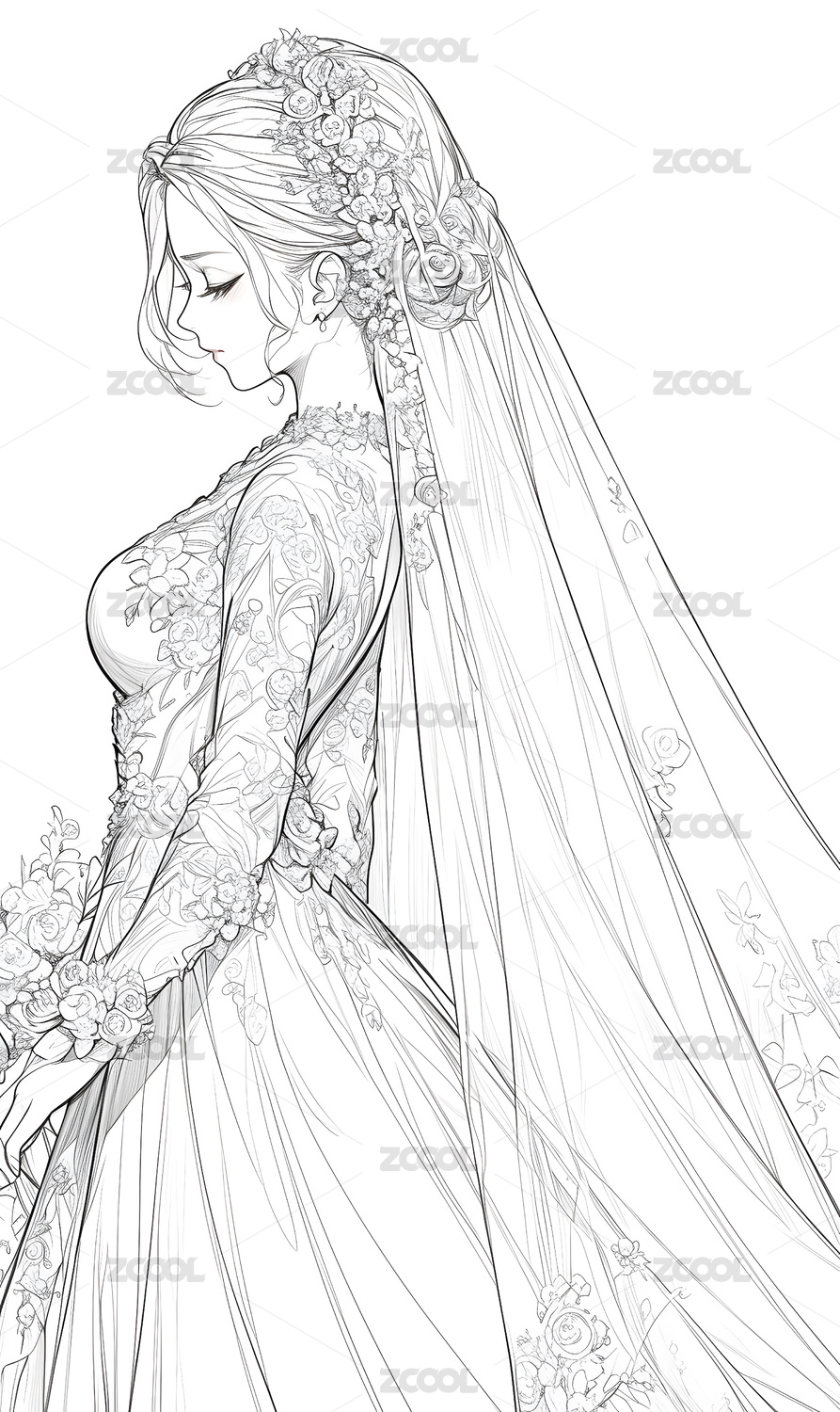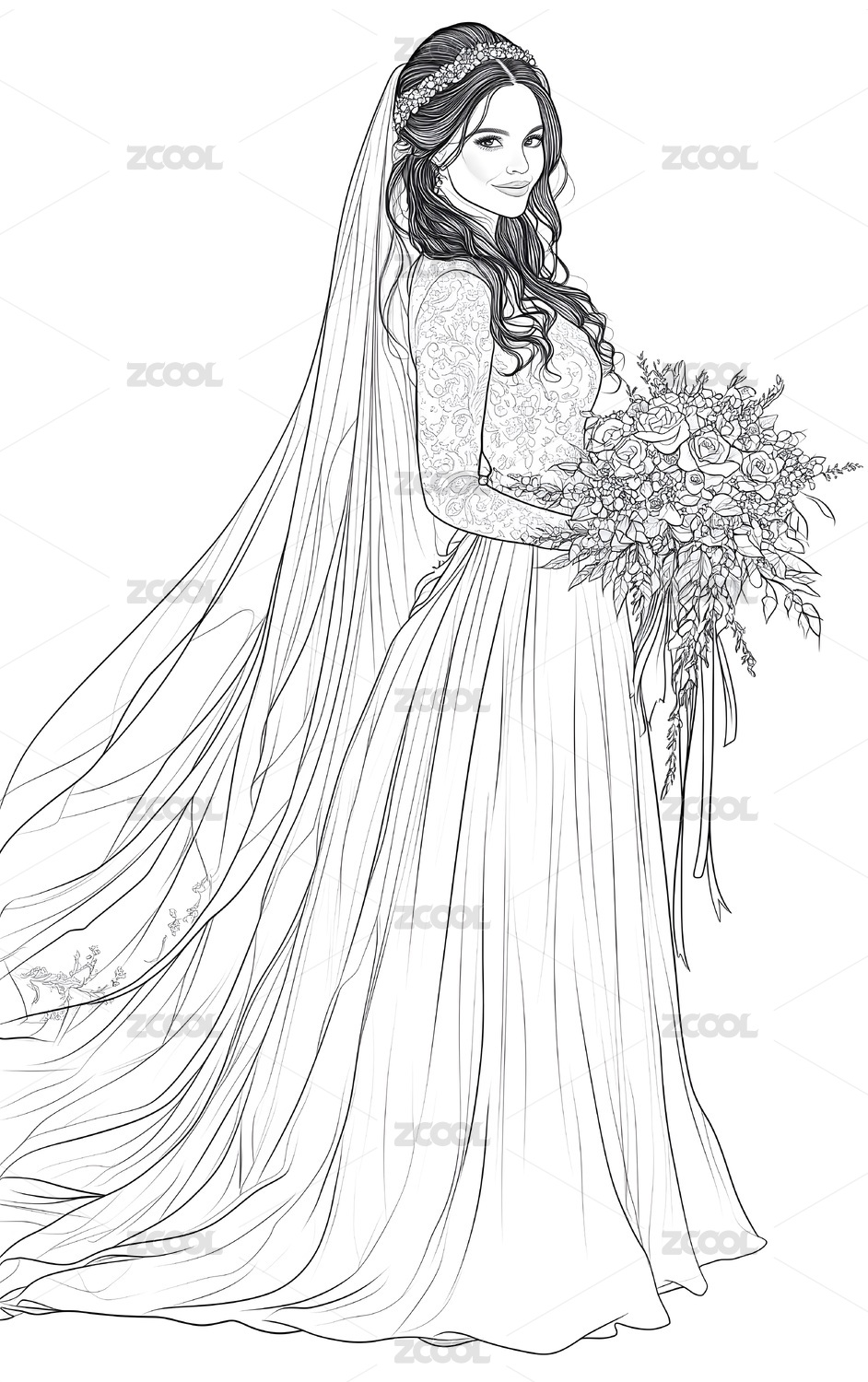 美丽婚纱 时尚插画线稿
