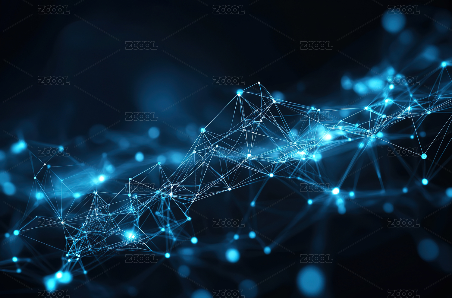 蓝色, 背景, 网络, 连接, 科技, 数据, 节点, 线, 光点, 抽象