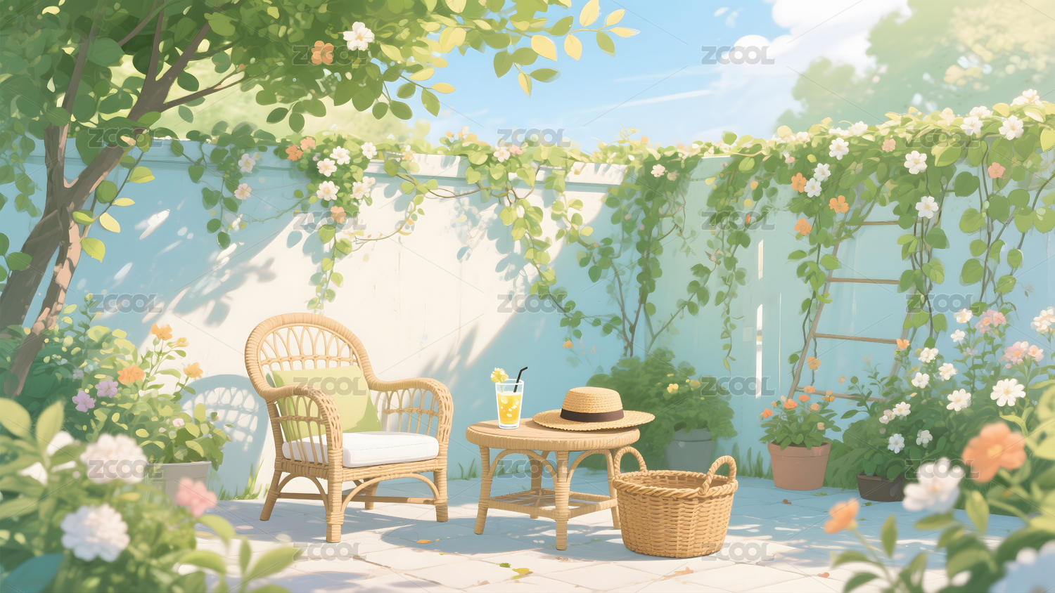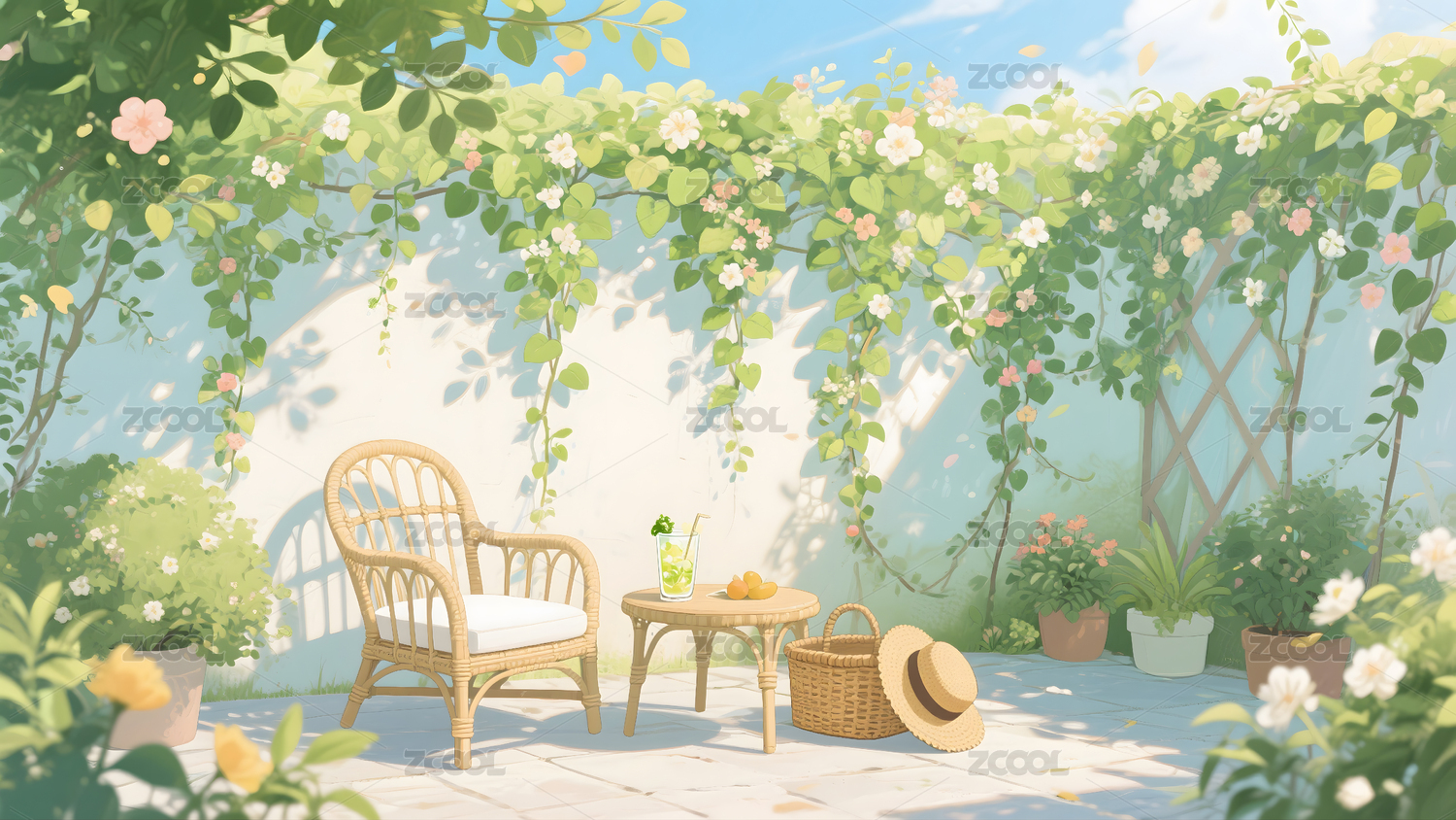 插画,清新,唯美,绿色,花朵,阳光,手绘,宁静,祥和,水彩