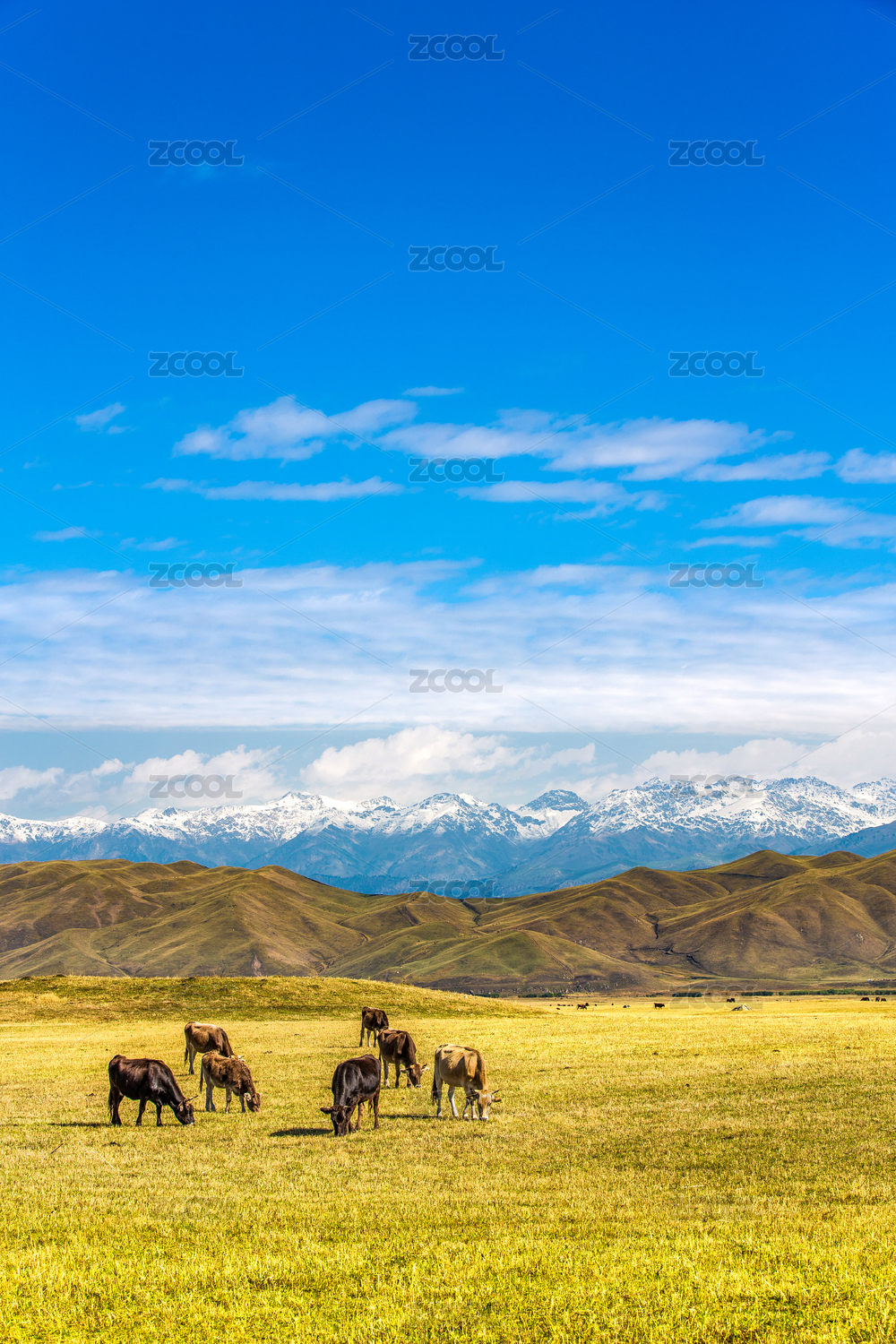 中国新疆那拉提空中草原雪山草地牛群风光