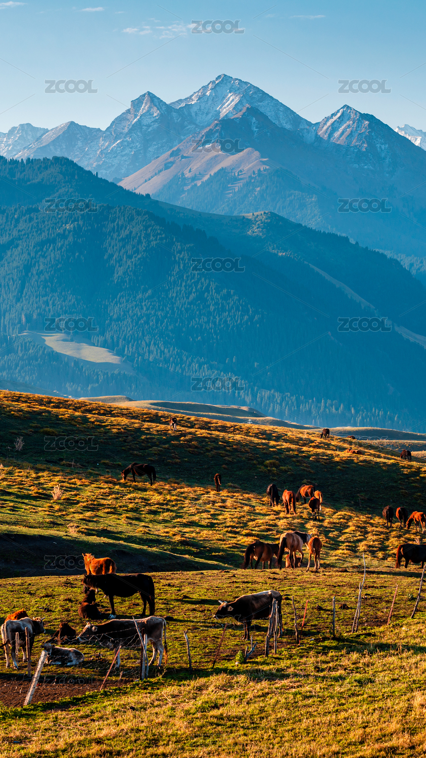 新疆,风光,风景,自然,森林,雪山,草地,牧场,高原,马群