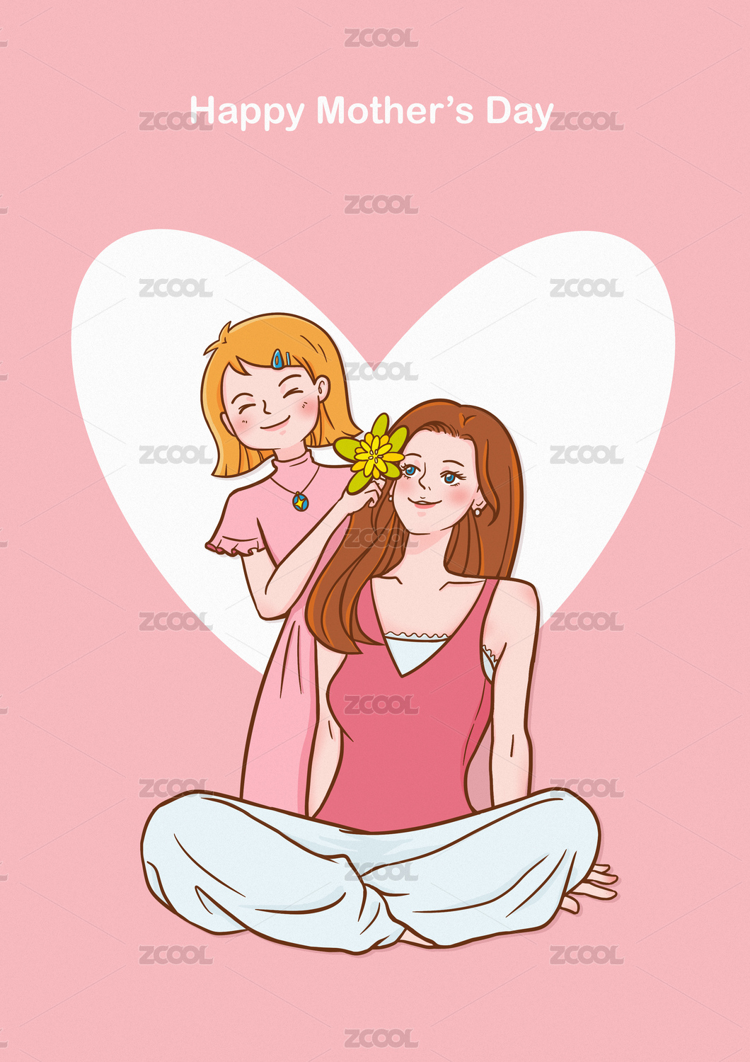 母亲节主题粉色插画