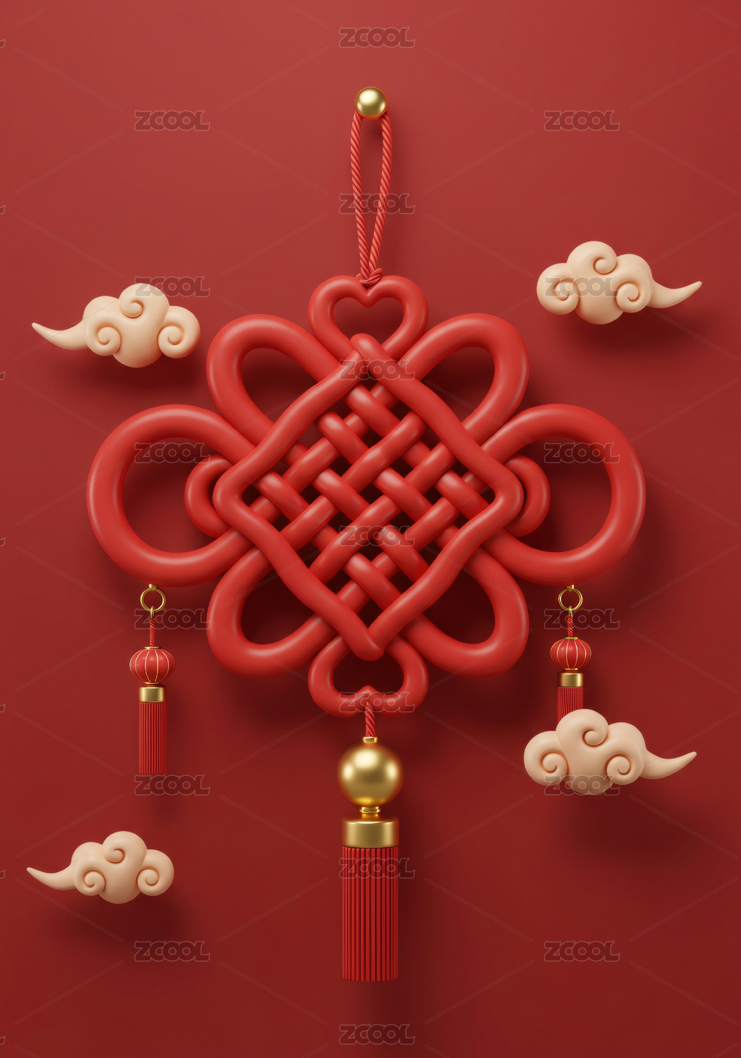 中国结,红色,喜庆,春节,3D,中国风,传统,文化,节日,装饰