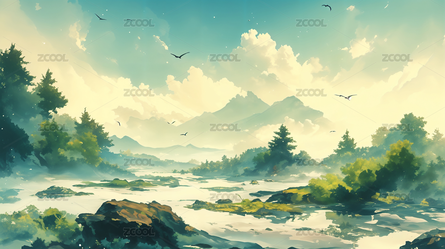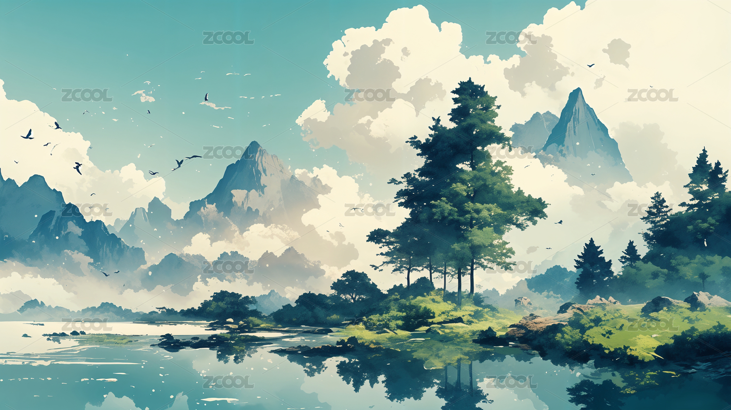 动漫风格,自然风光,插画艺术,风景画,山水画,动漫插画,自然景观,艺术创作,二次元,日系风格