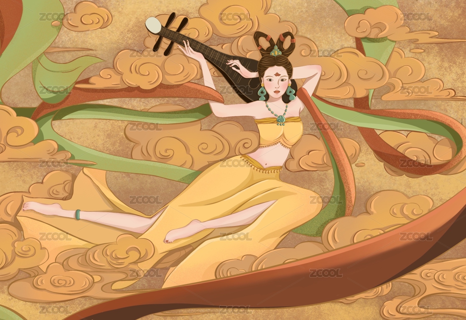 仙女,神仙,彩云,跳舞,琵琶,飘带,星空,圣女,莫高窟,壁画