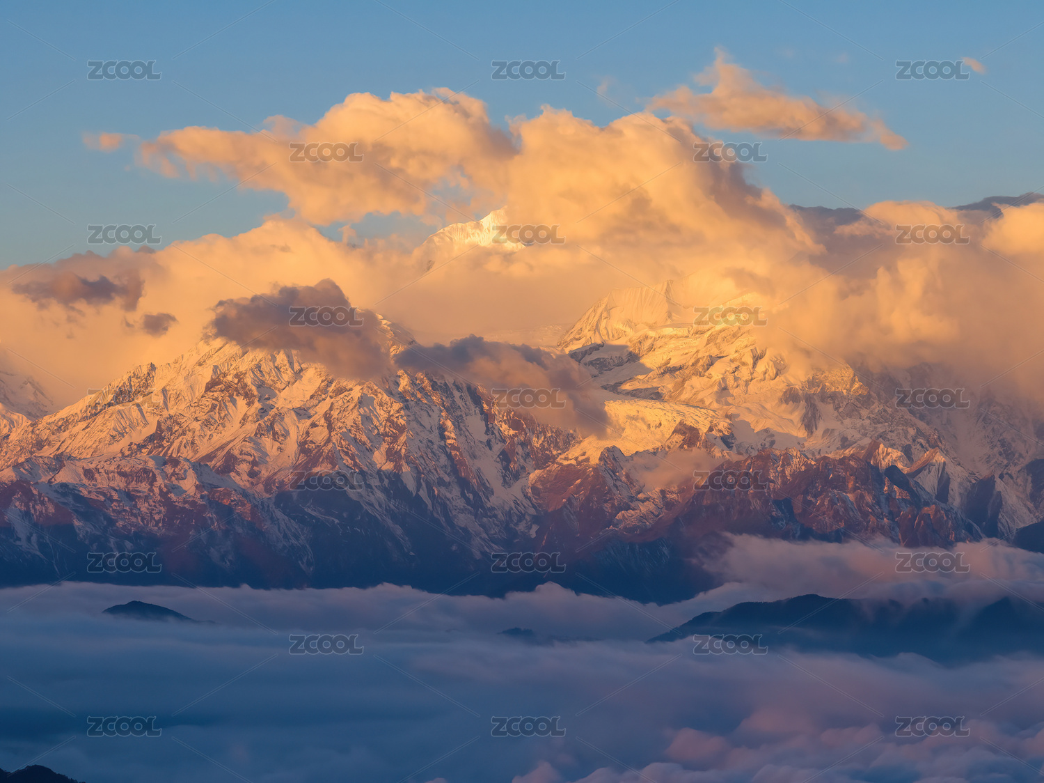 中国四川省甘孜州华尖山眺望贡嘎山日出