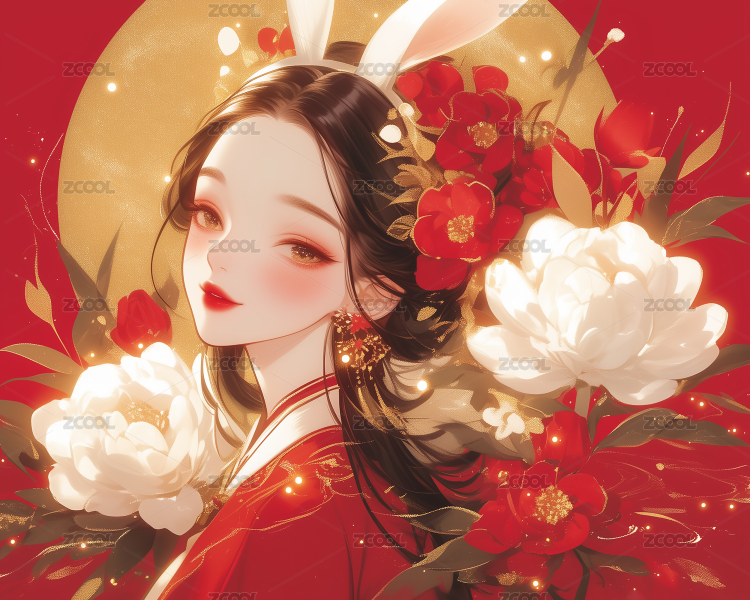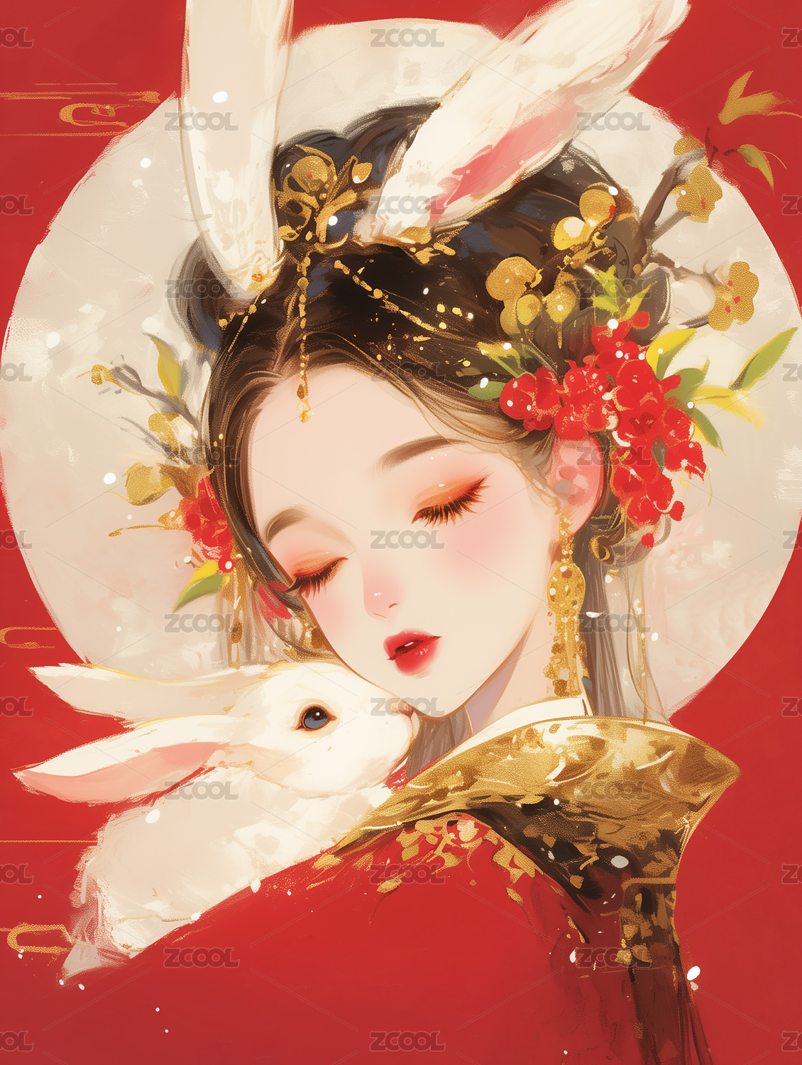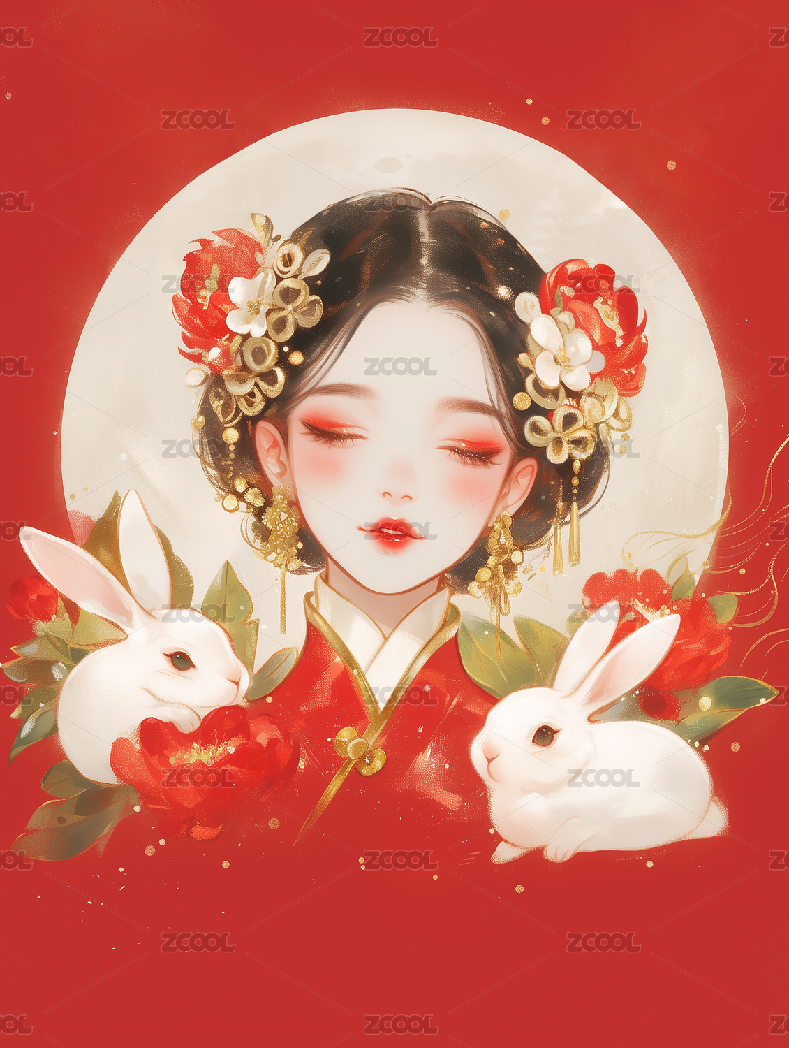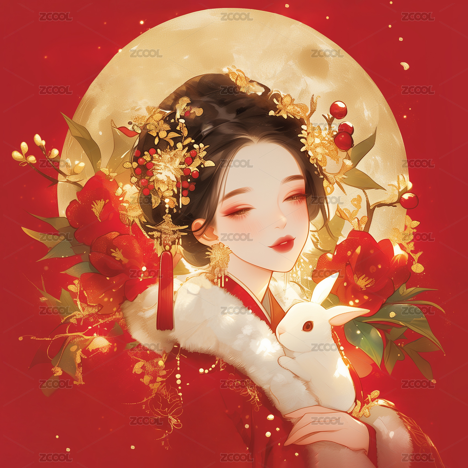 卡通,动人,唯美,漂亮,女孩,人物,喜庆,红色系,古装,汉服