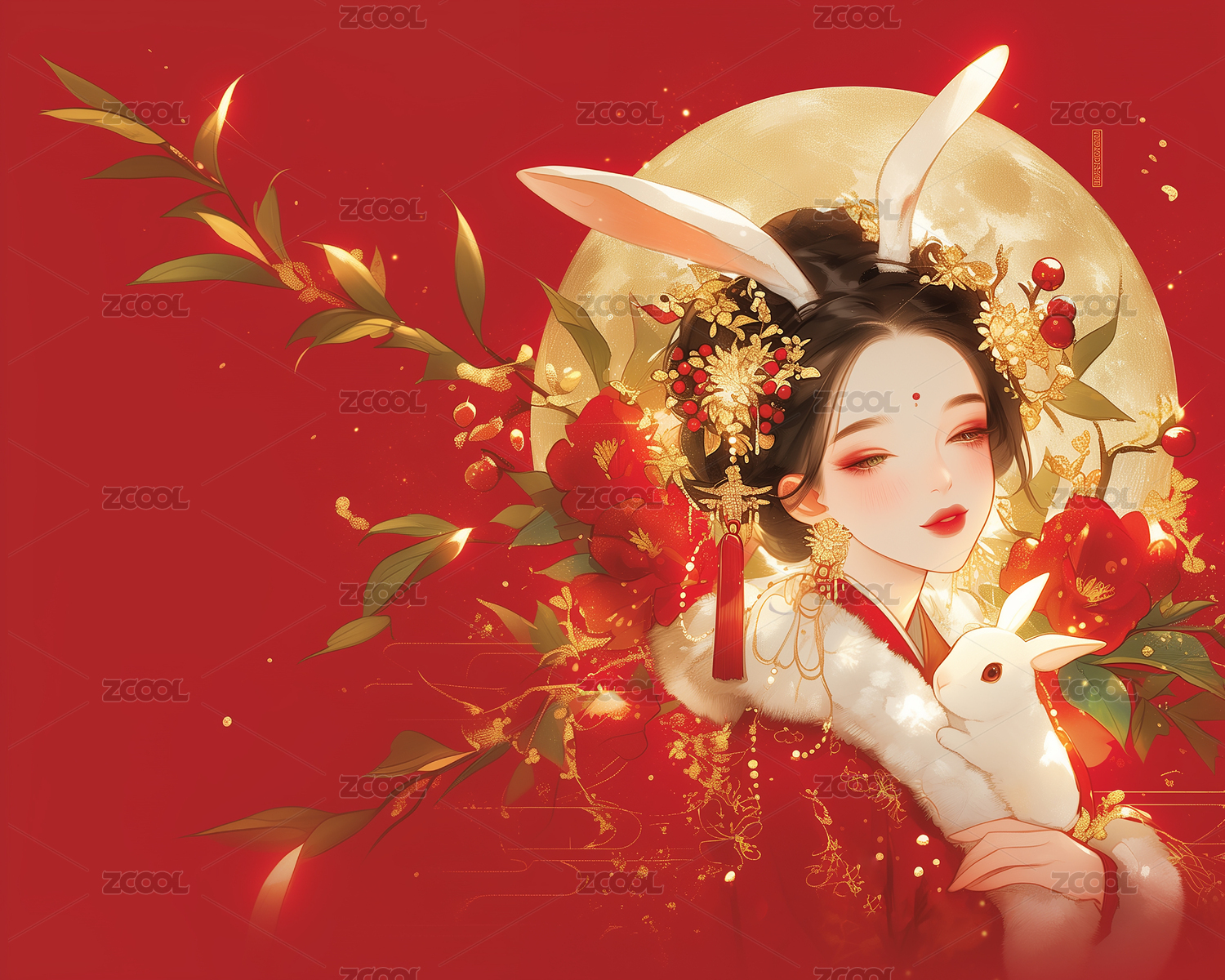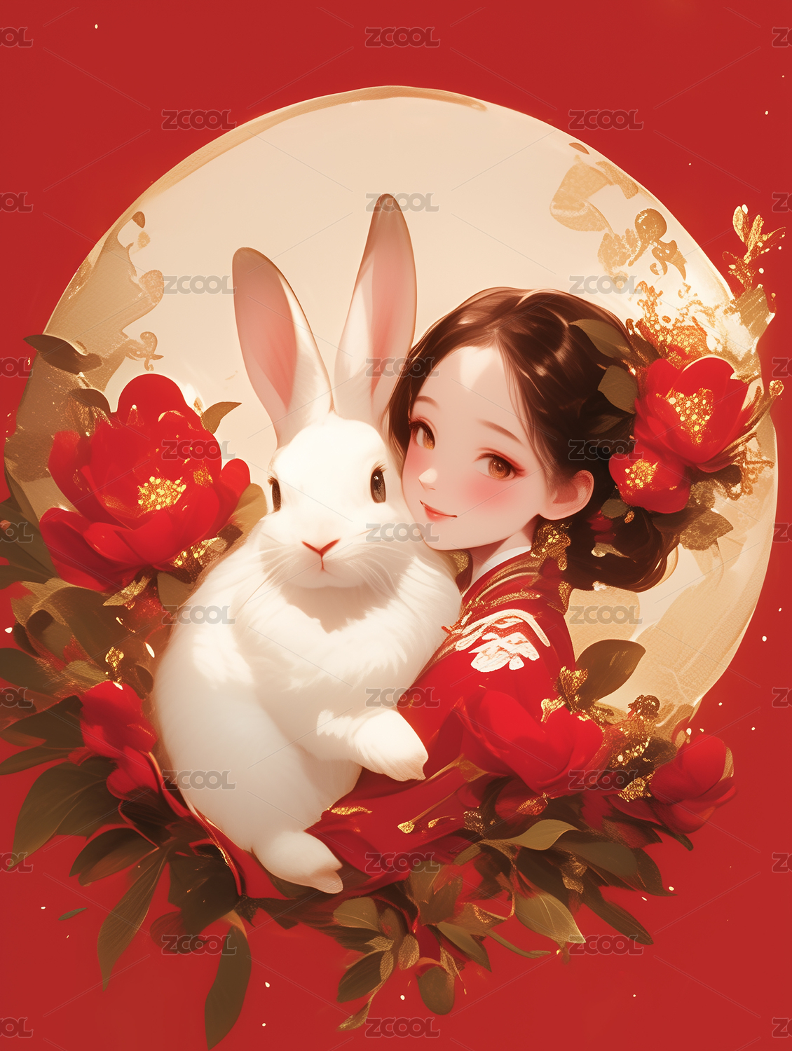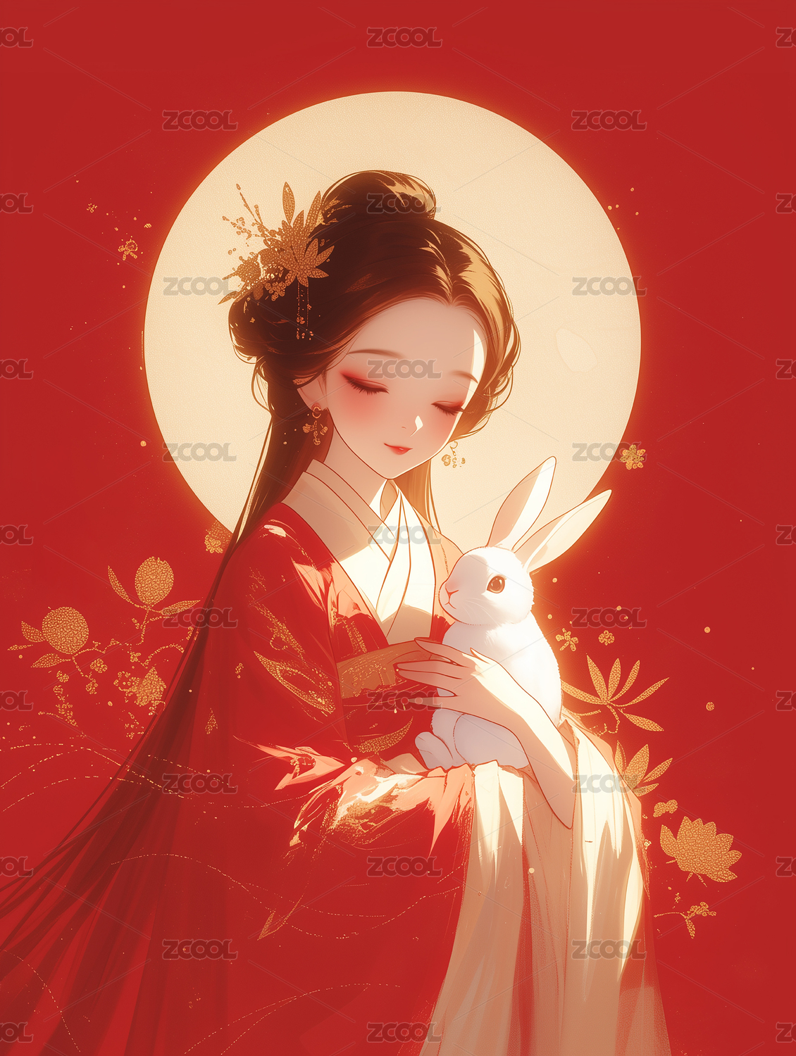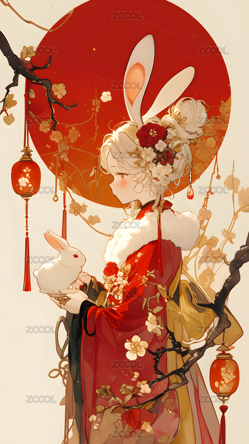 卡通,动人,唯美,漂亮,女孩,人物,喜庆,红色系,古装,汉服
