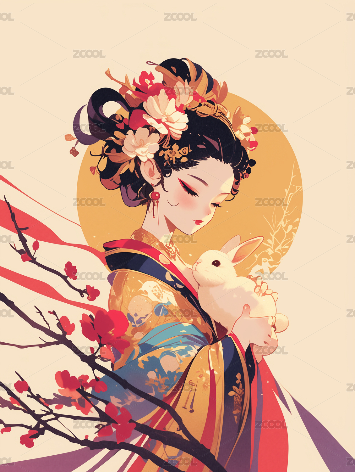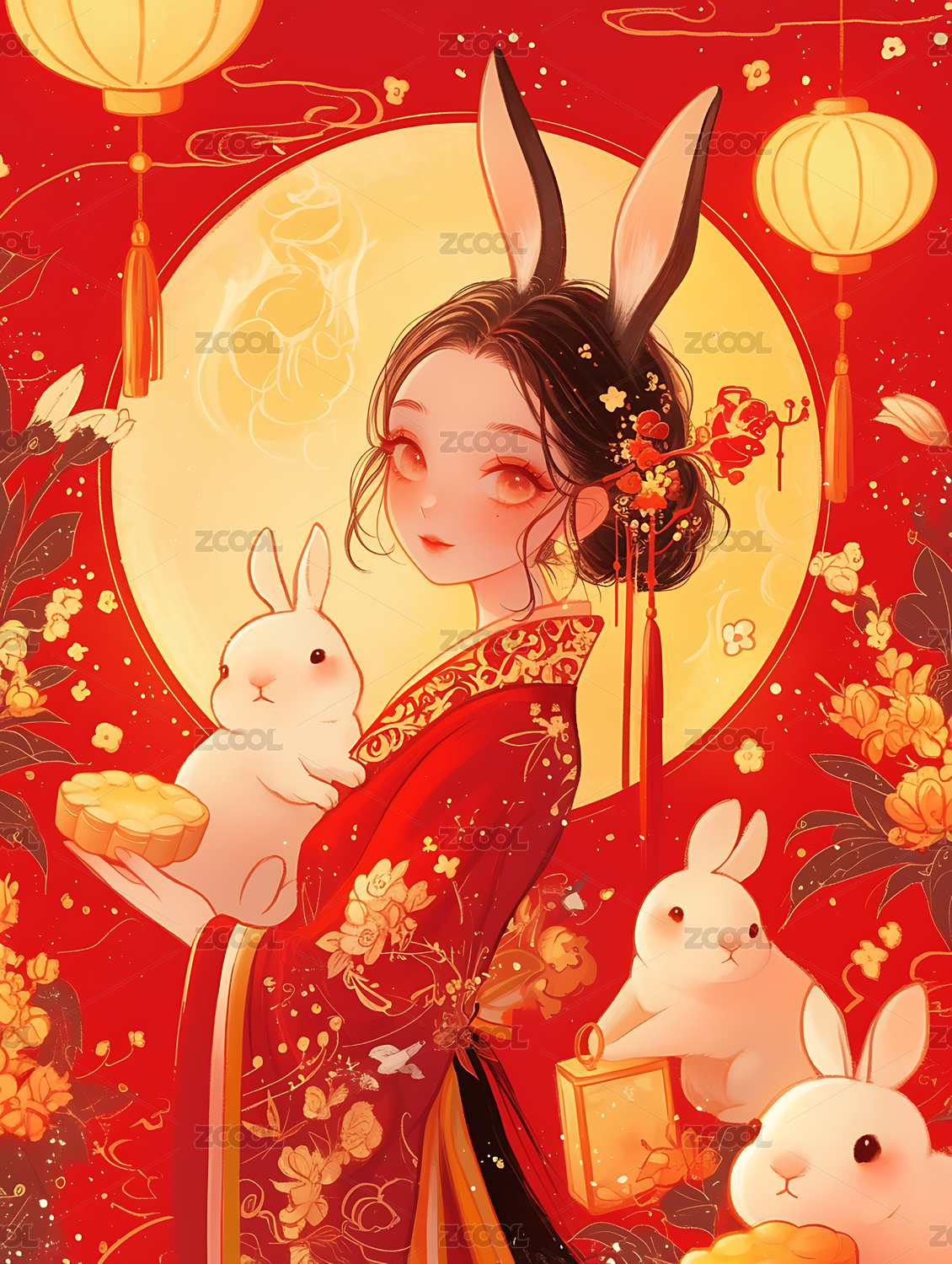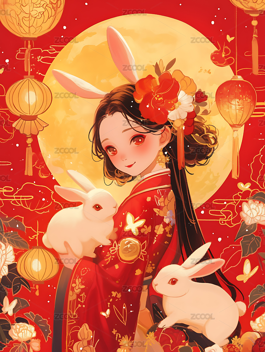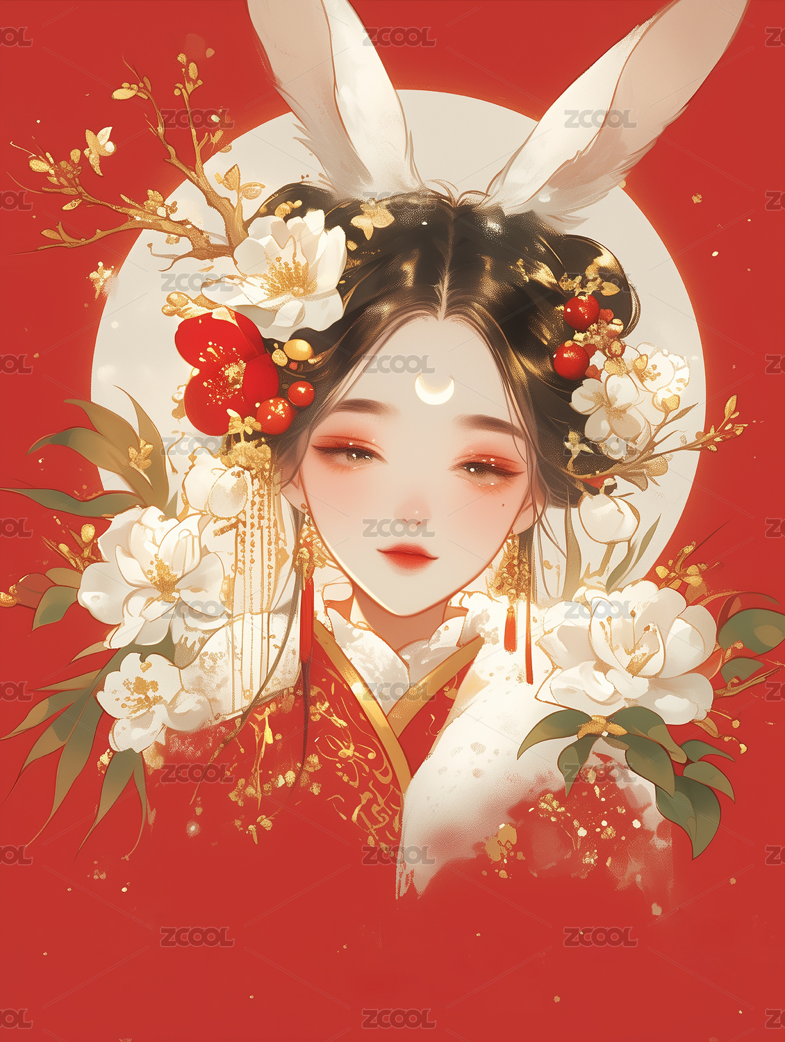 卡通,动人,唯美,漂亮,女孩,人物,喜庆,红色系,古装,汉服
