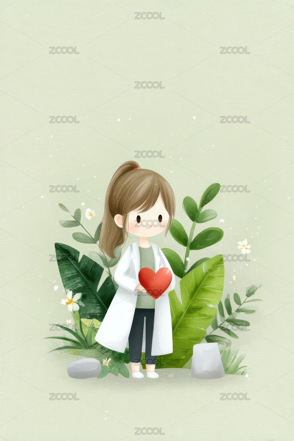 拿花的可爱女孩 小清新治愈森系人物商业插