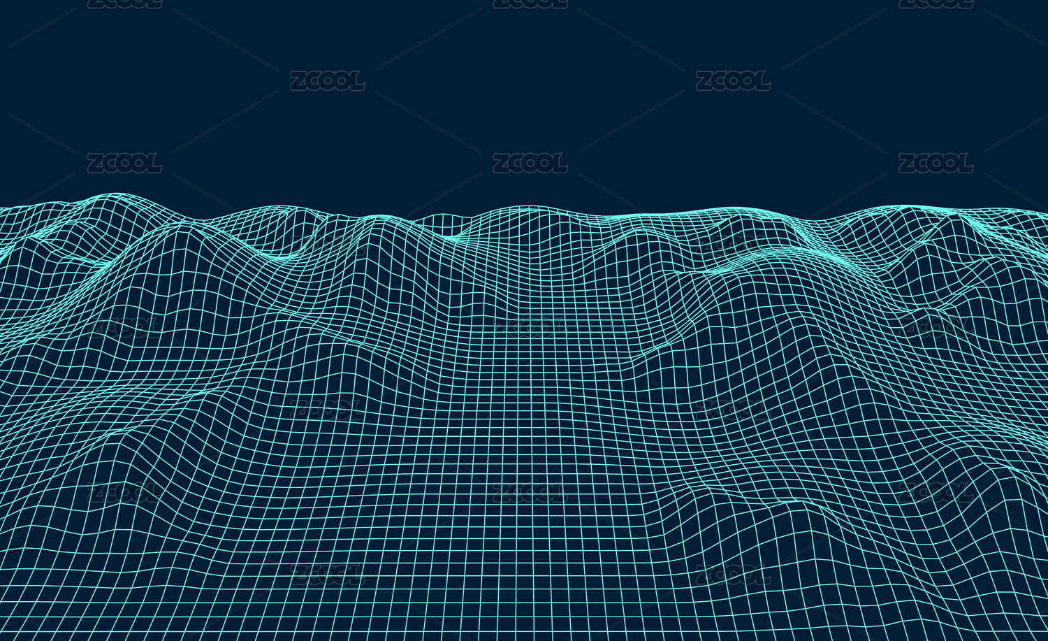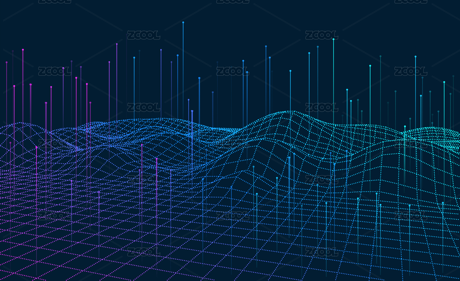 三维地形图,等高线。抽象的点线科技背景,类似云端数据连接、区块链、神经网络的概念。