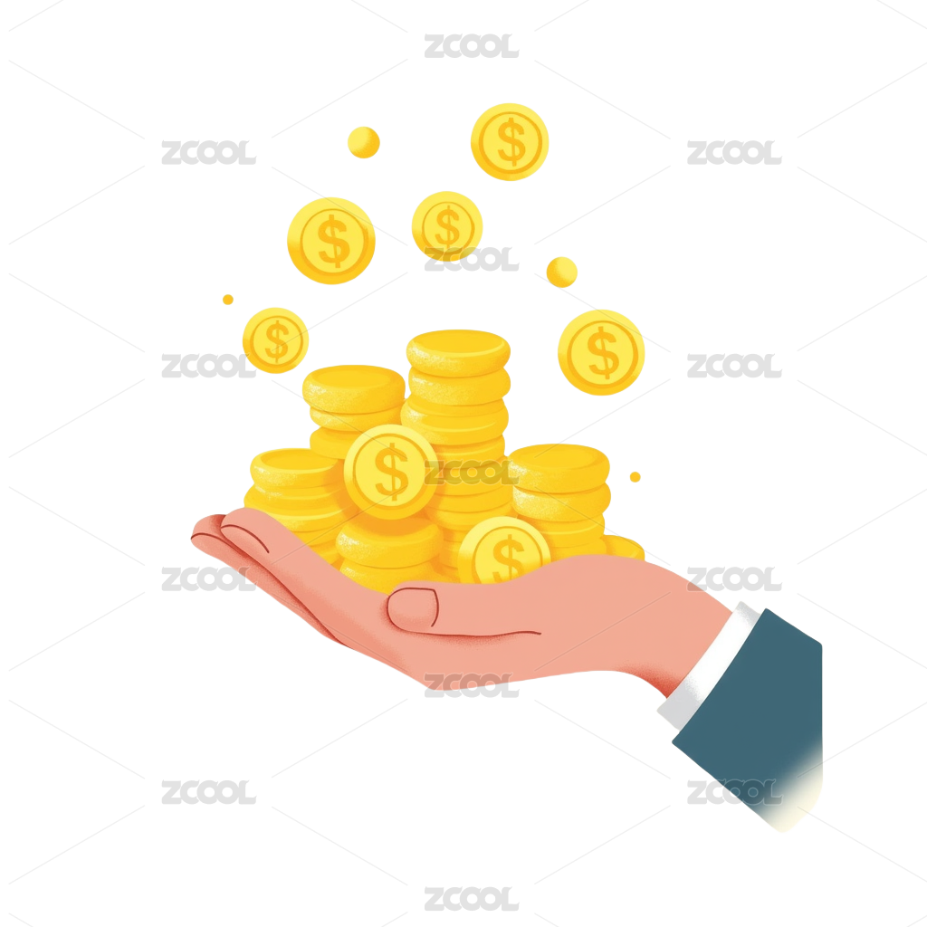 商务男人手捧小猪存钱罐与金币投资理财插画