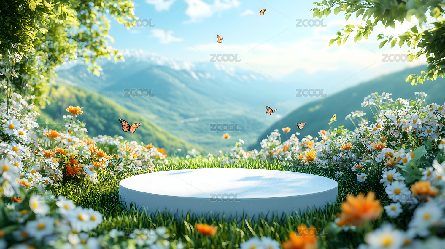 展台,产品展台,电商,DXCZ202401,产品展示,花草,田野,蝴蝶,清新