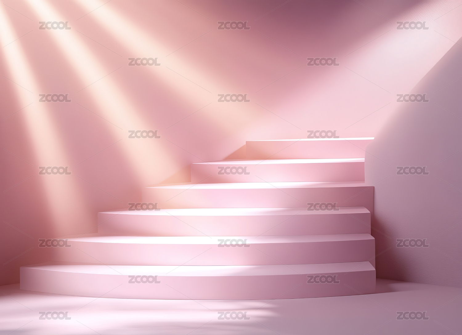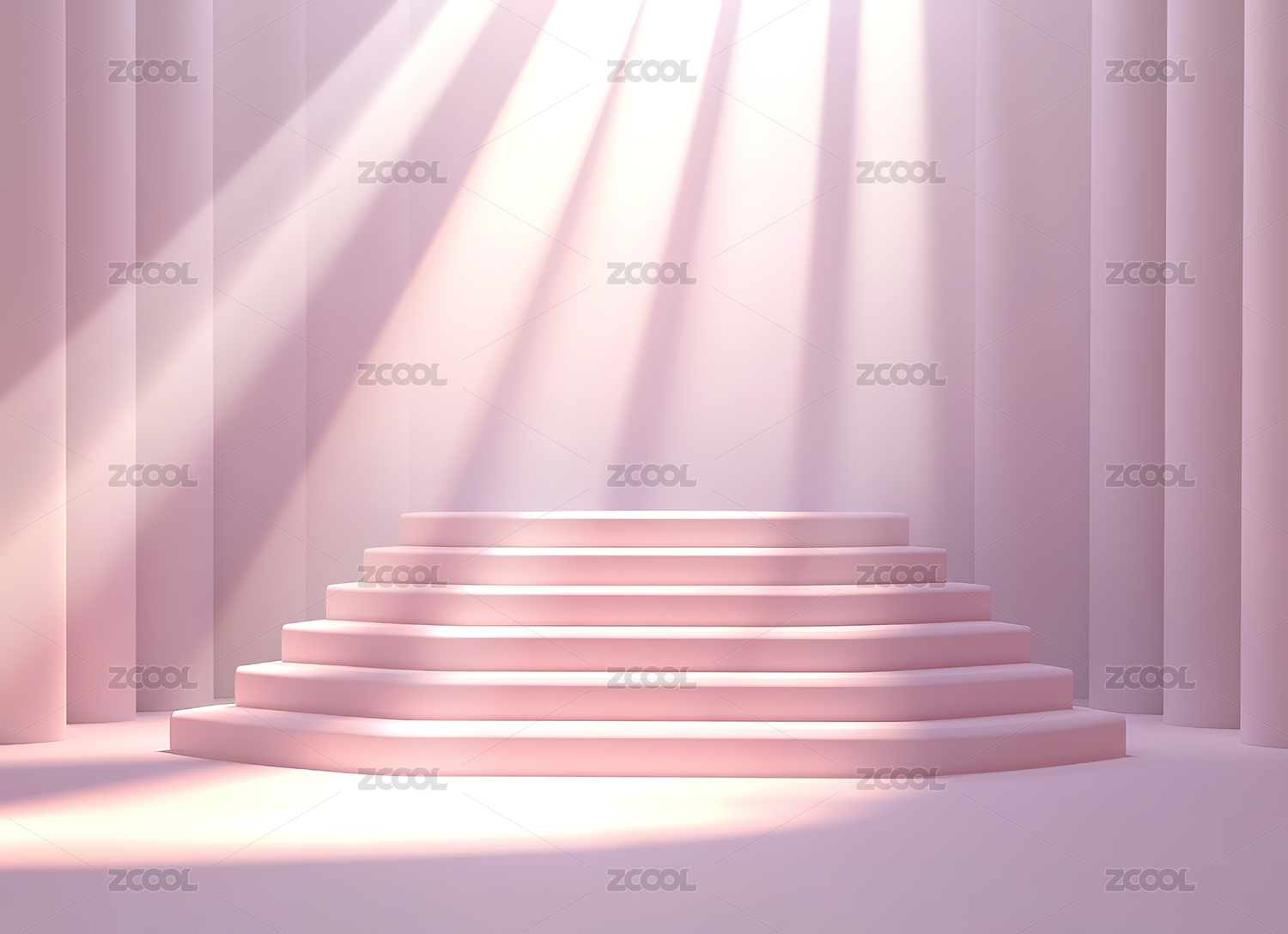 梦幻粉蓝渐变色展台底座电商3D效果图