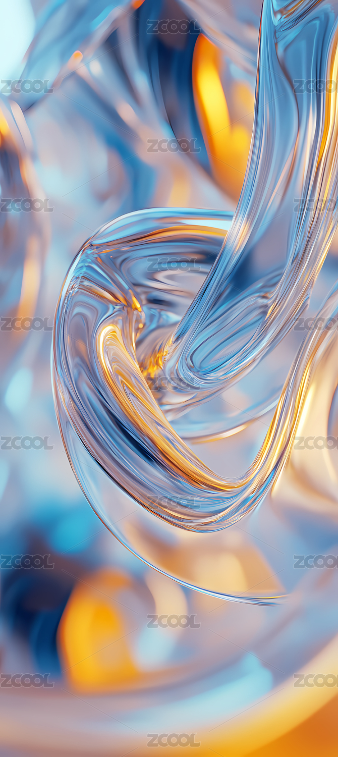 晶莹反射光影起伏波浪流淌透明液体3d插画