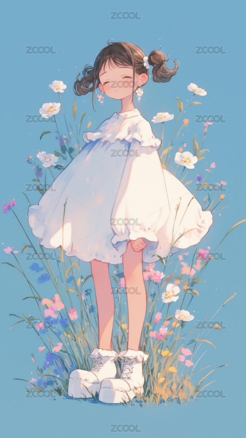 花丛中的小女孩