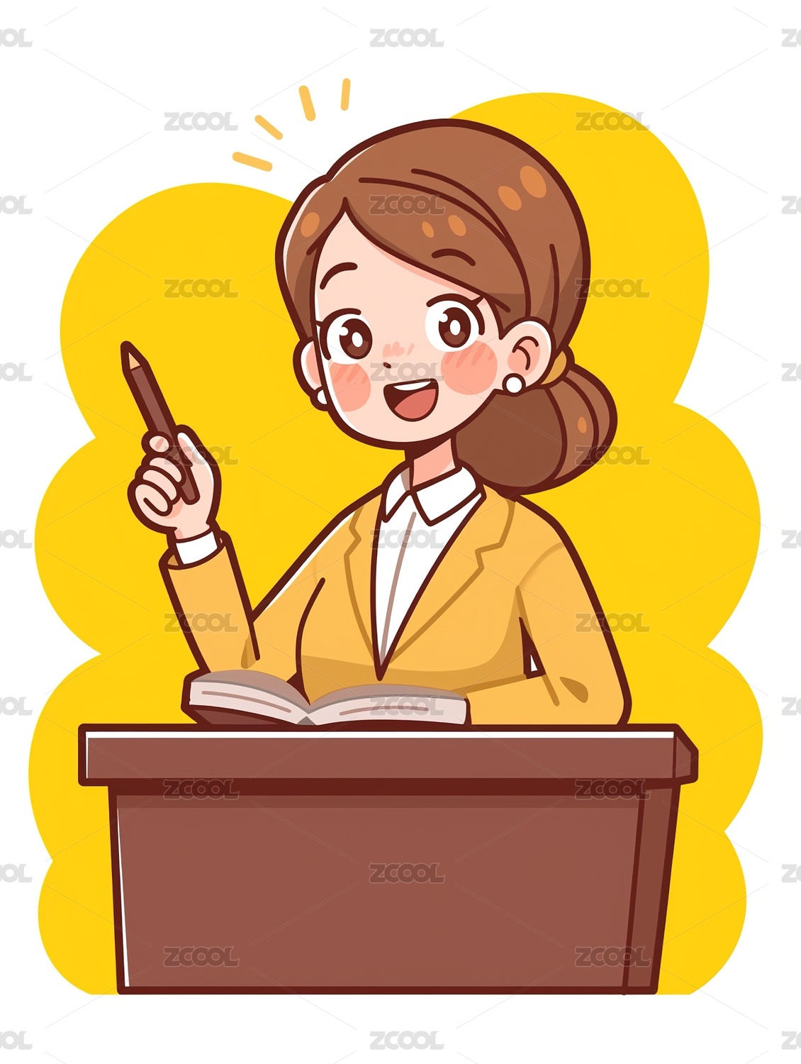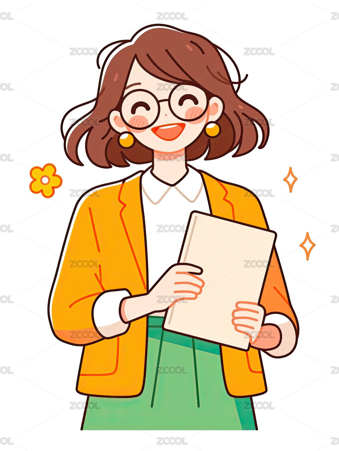 卡通风可爱儿童孩子女孩拿着书本小老师插画