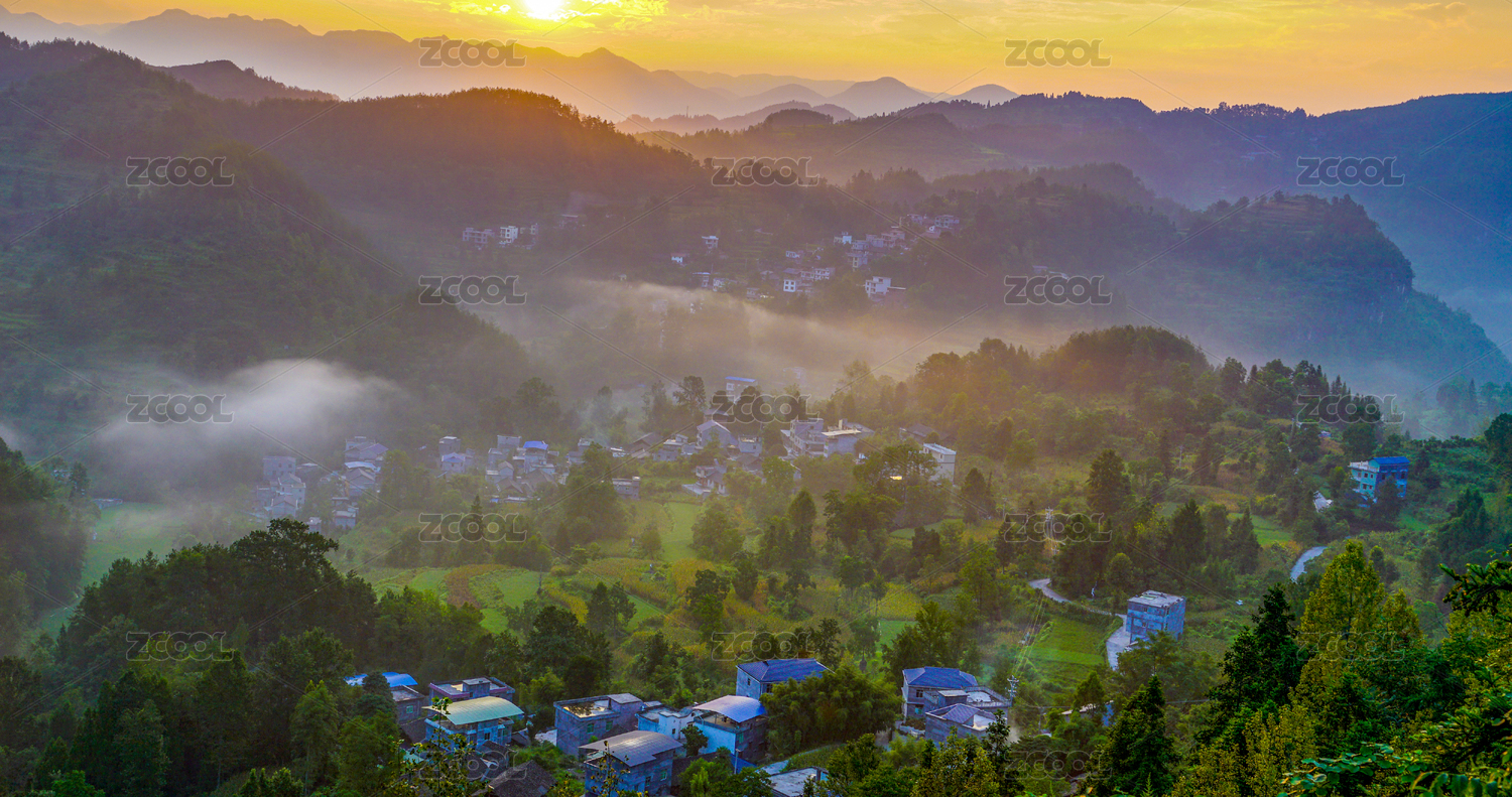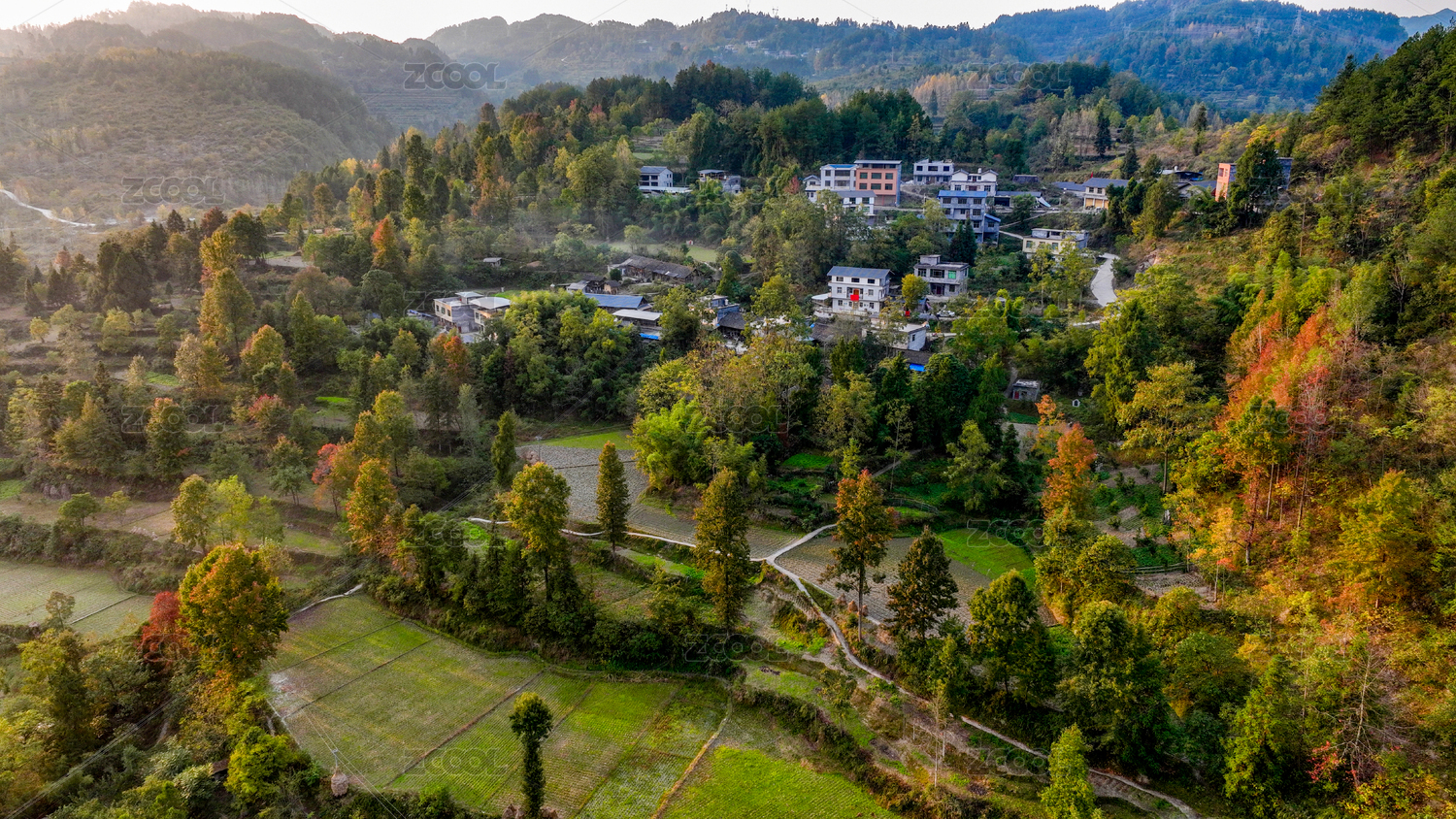 亚洲,中国,重庆,酉阳,乡村,秋天,早晨,美景,雾气,庄稼