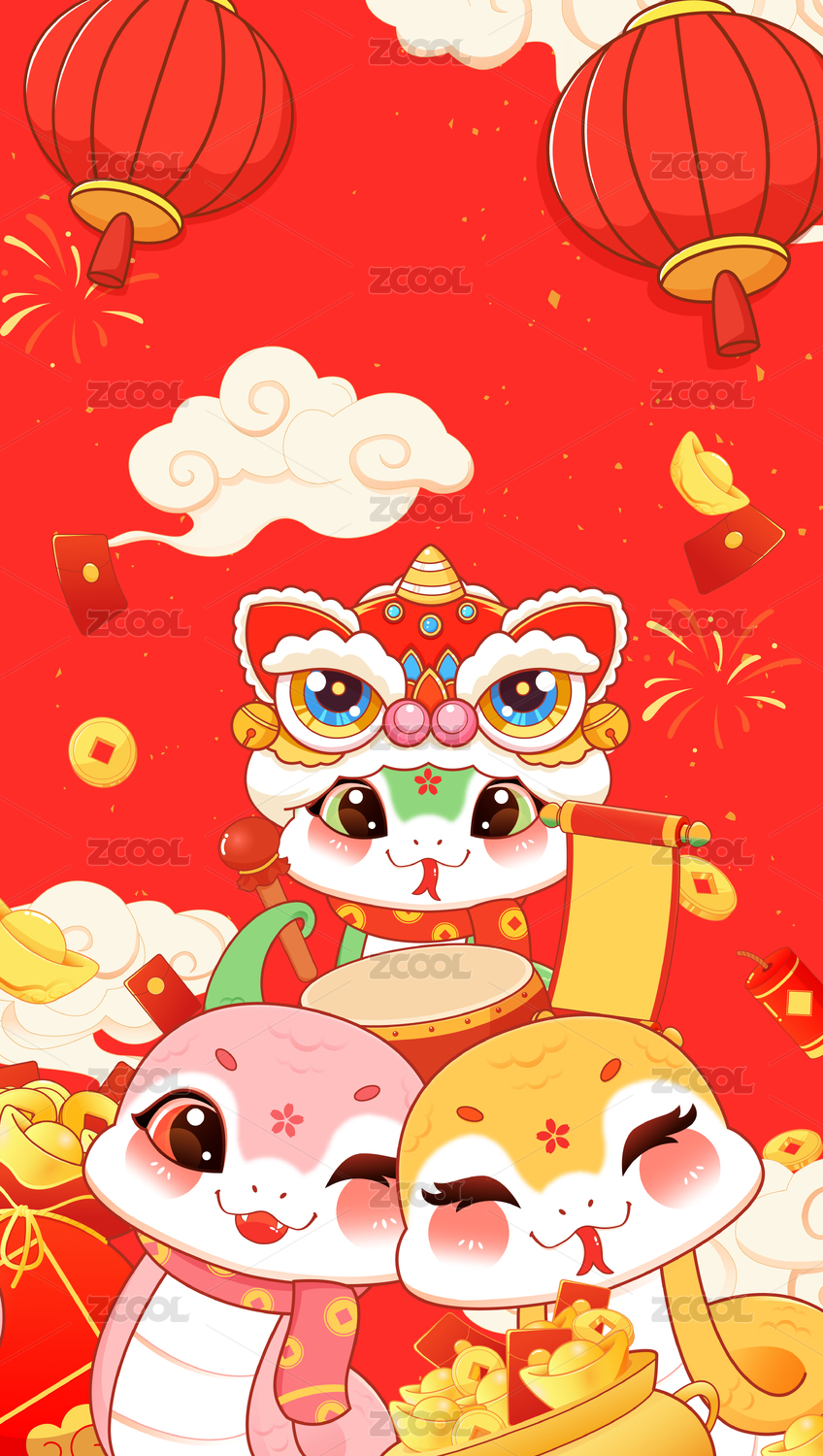 蛇年,卡通蛇,十二生肖,吉祥物,2025年,春节,新年,中式