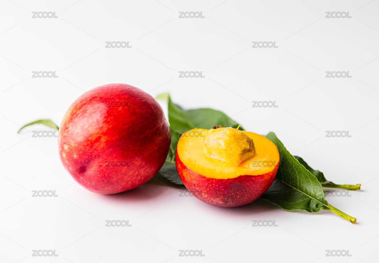桃子,白色,成熟,切割,切片,水果,特写,新鲜,叶子,多汁