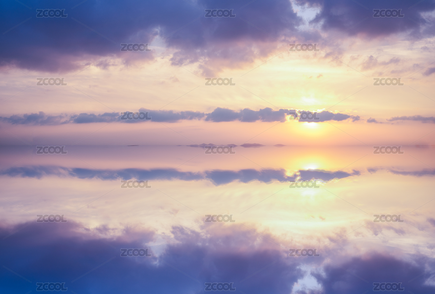 玻利维亚乌尤尼天空之镜的日落火烧云