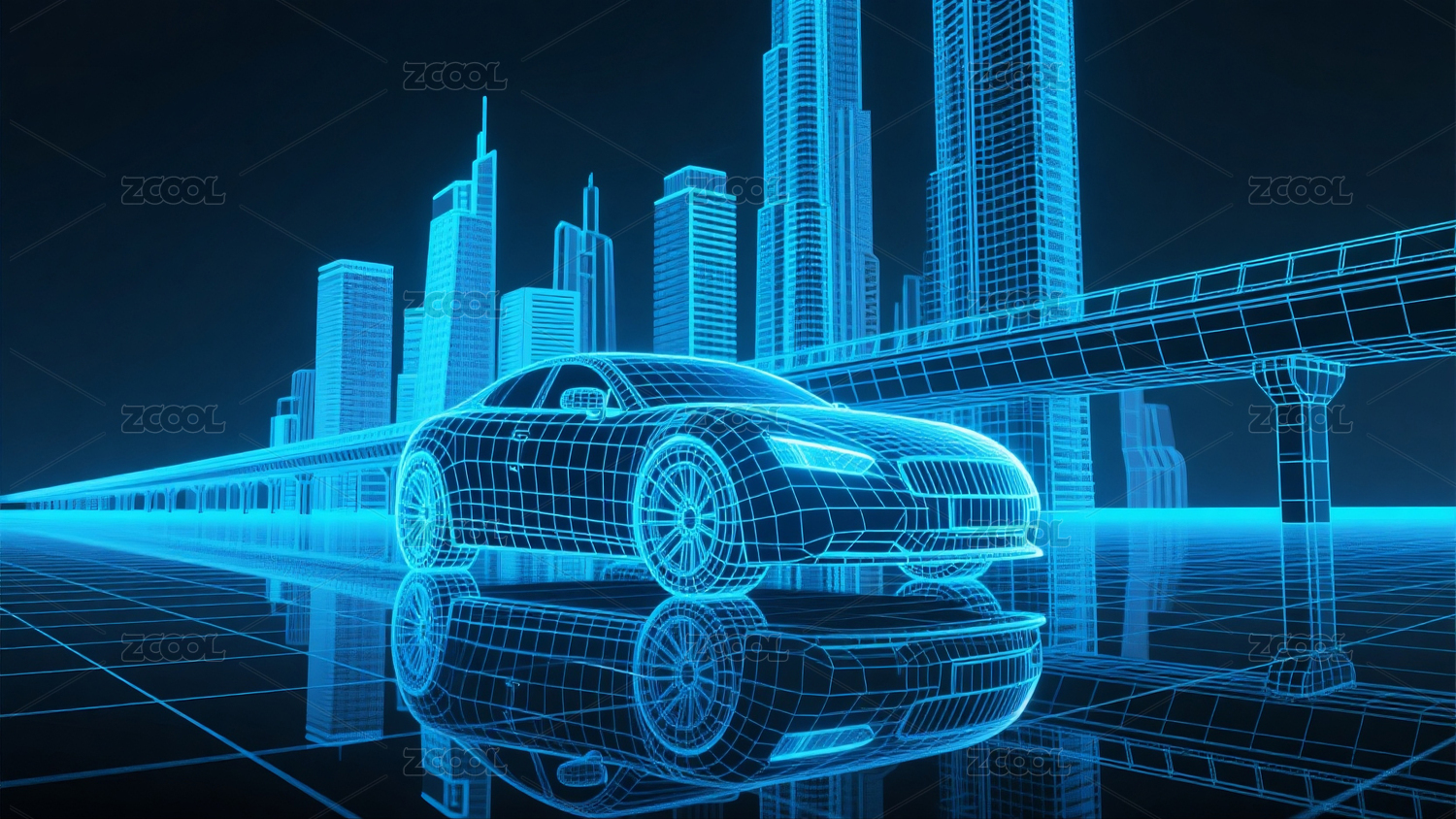新能源汽车线条3d简洁智能驾驶科技感插画