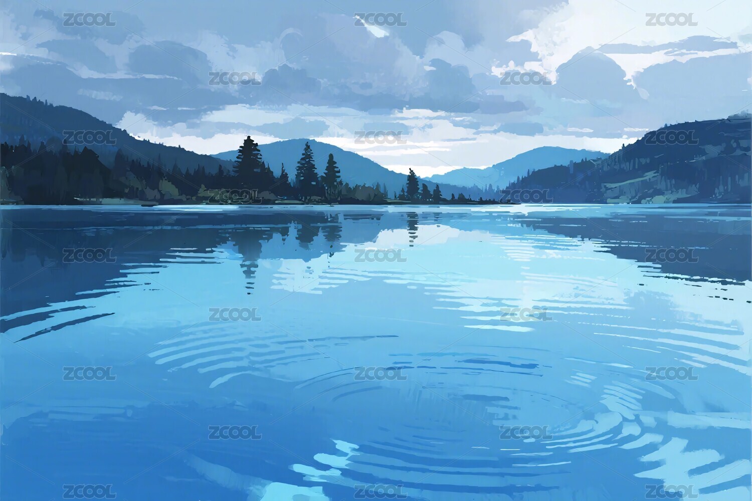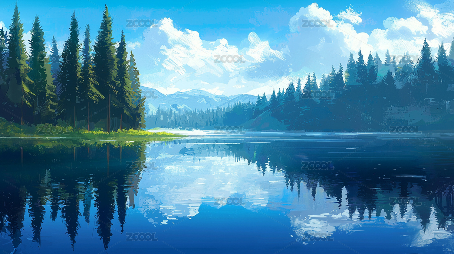 湖泊景观插画