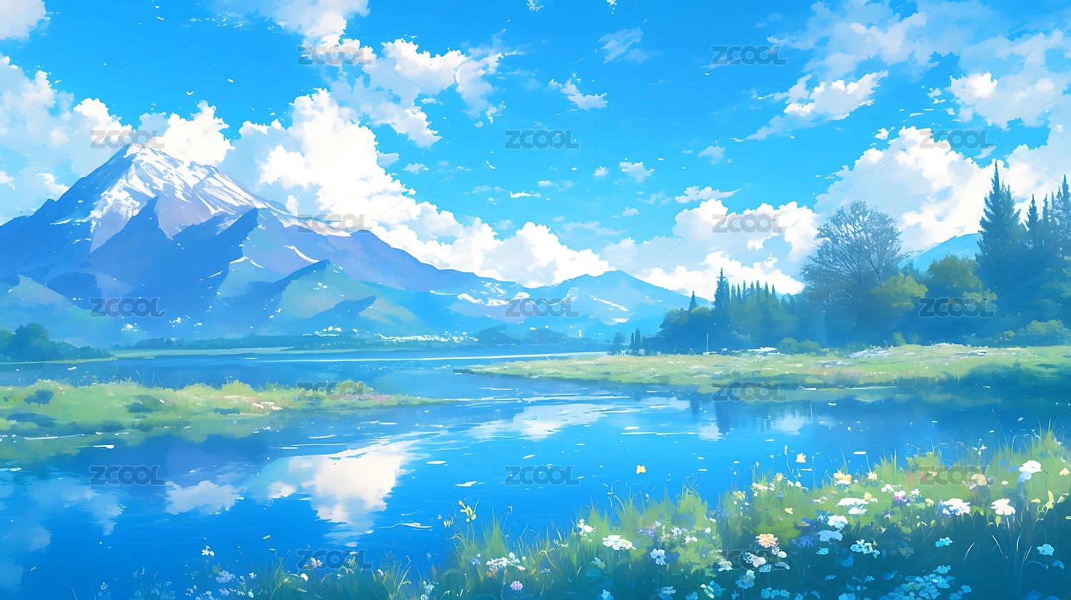 动漫风格的自然风光插画