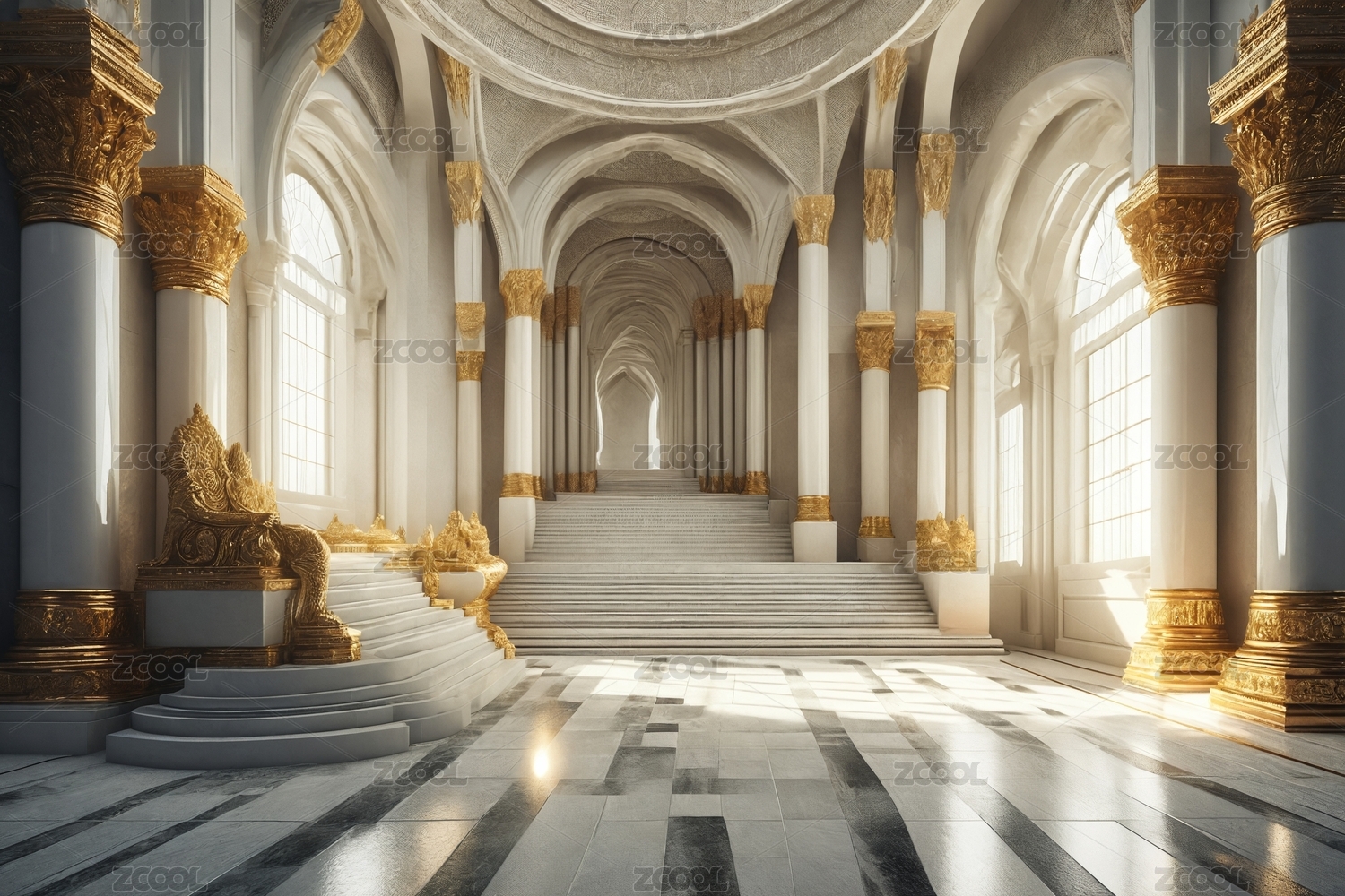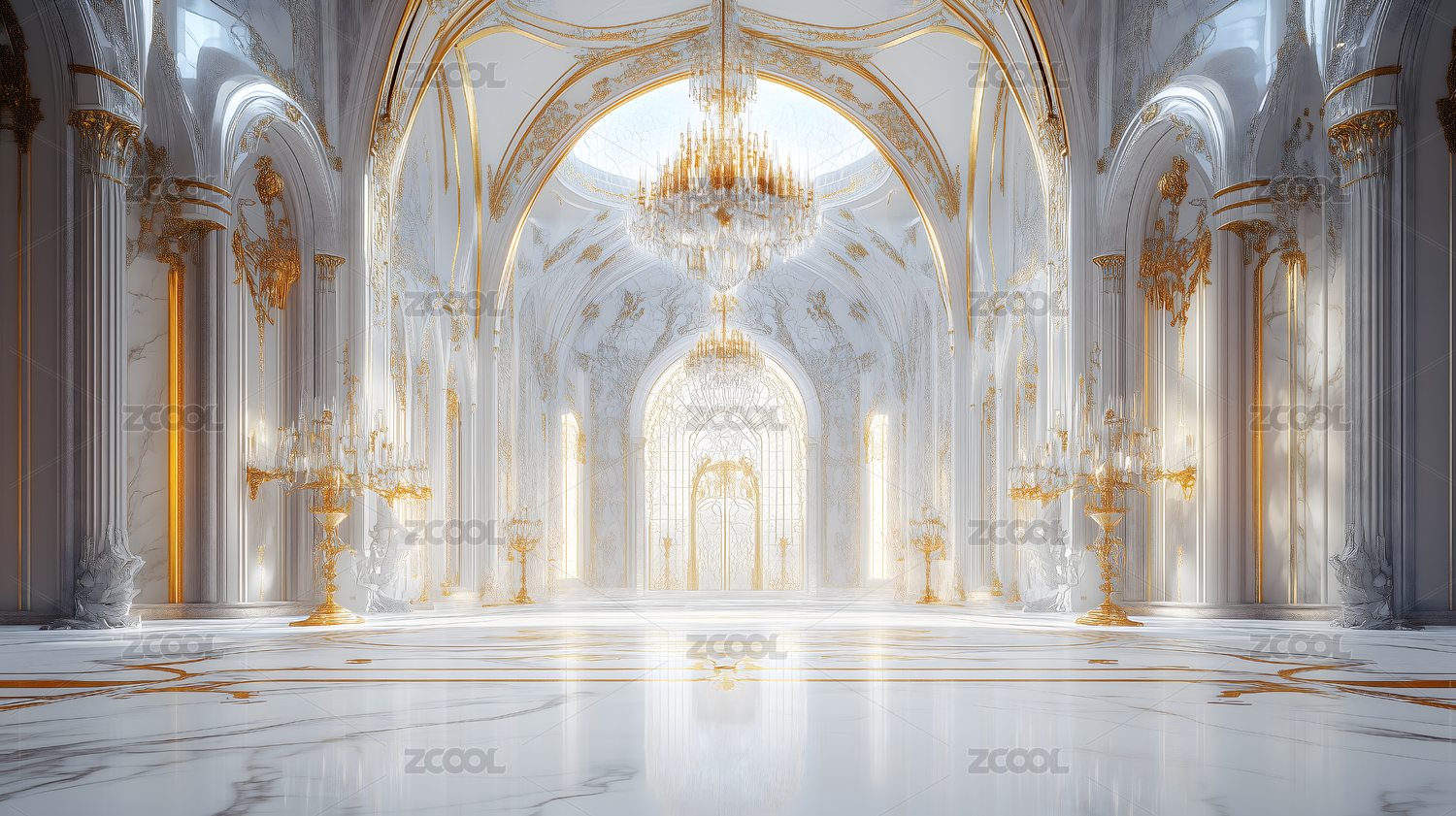 金色光芒洒落的华丽室内
