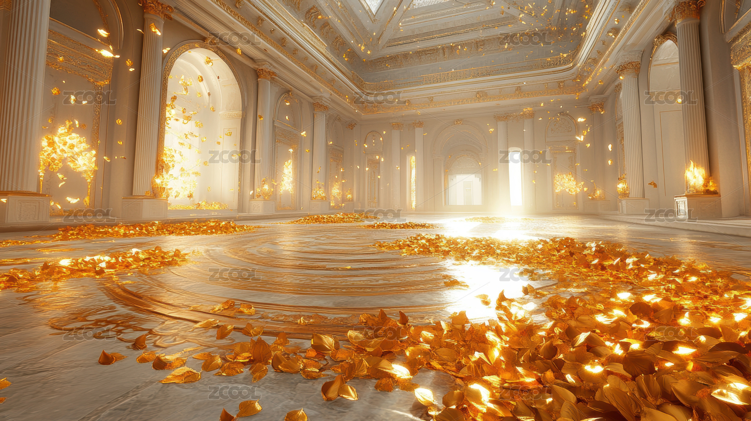 金色花瓣飘落的宫殿