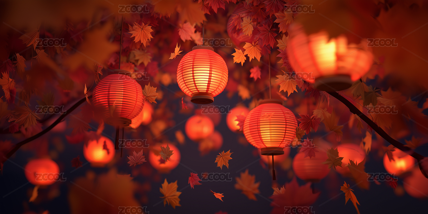 秋天,灯笼,树枝,装饰,自然,红叶,夜晚,美丽,传统,文化