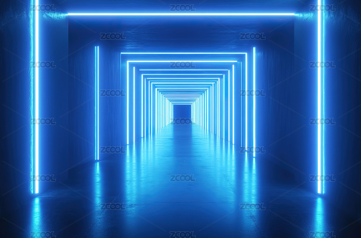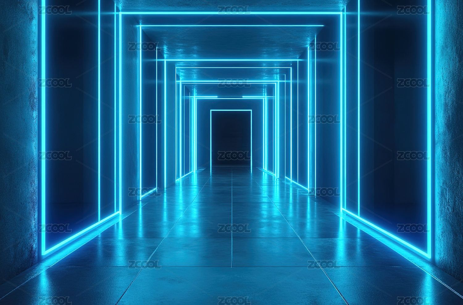 3D渲染科幻延伸蓝色未来科技感空间场景