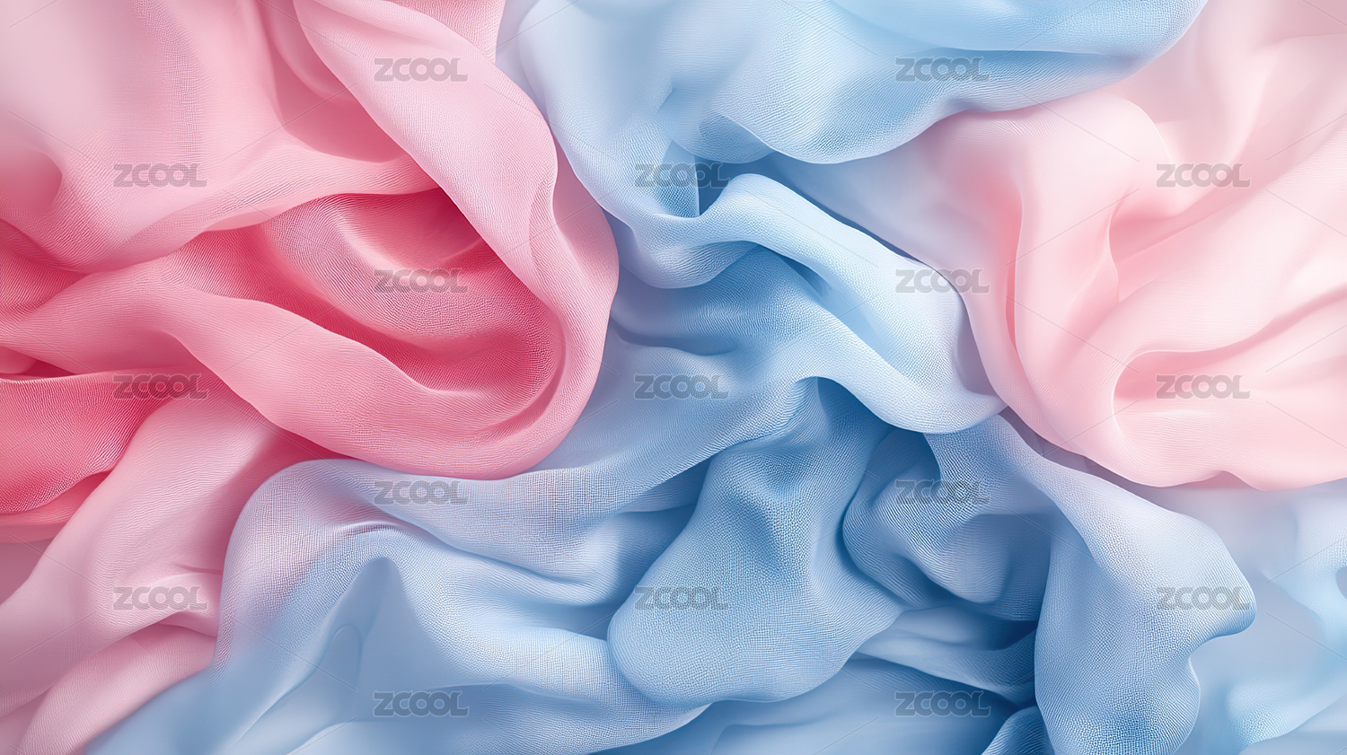 蓝粉两色丝绸面料交织在一起光泽柔美