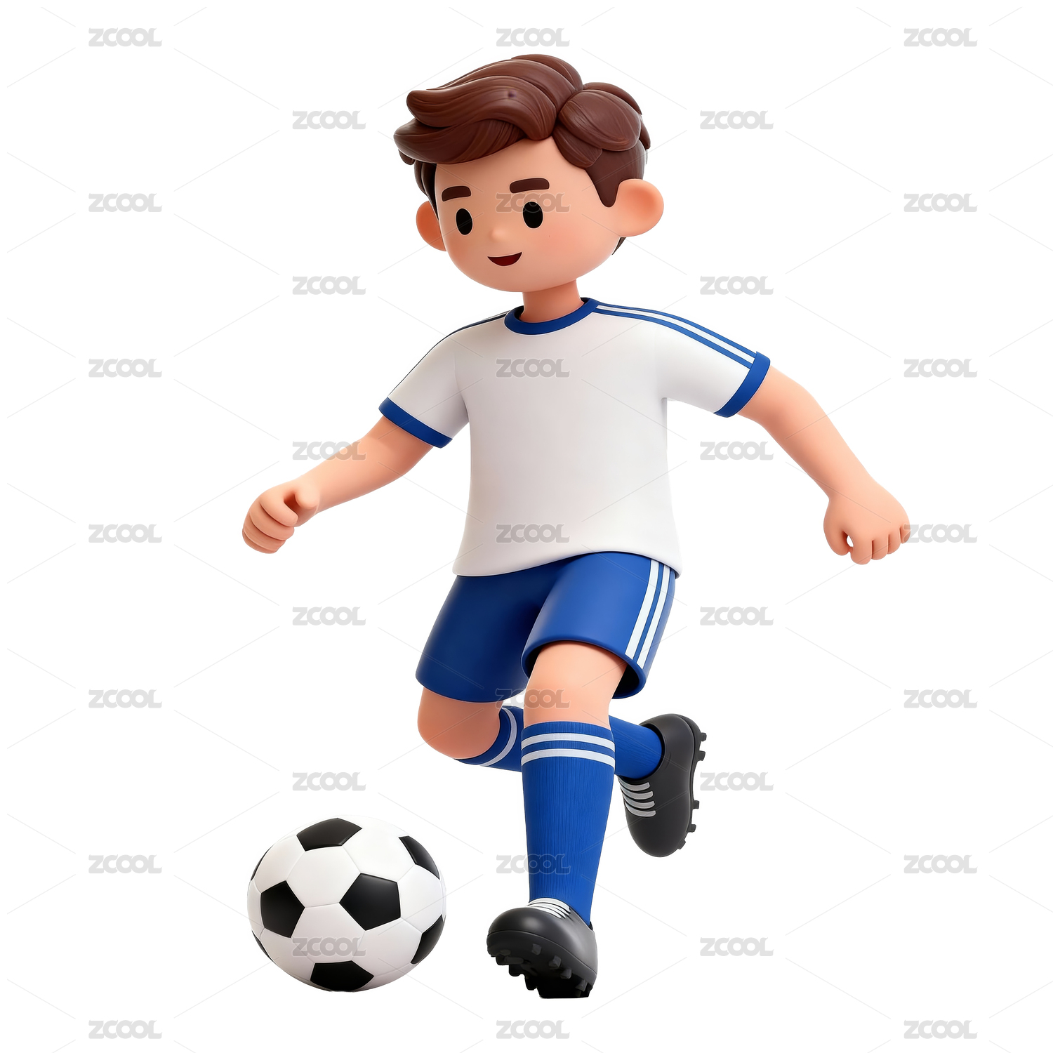 3D渲染的卡通足球男孩