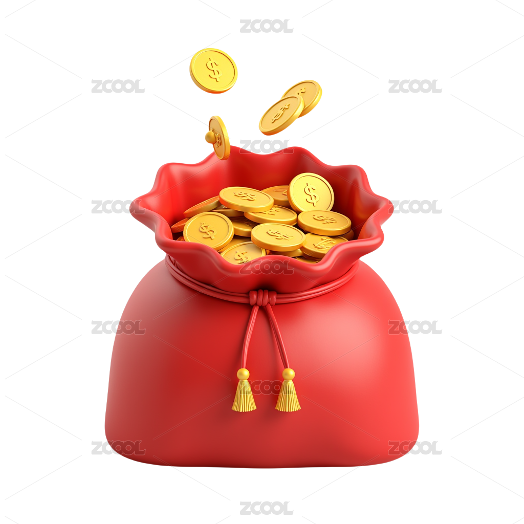 红色钱袋装满金币