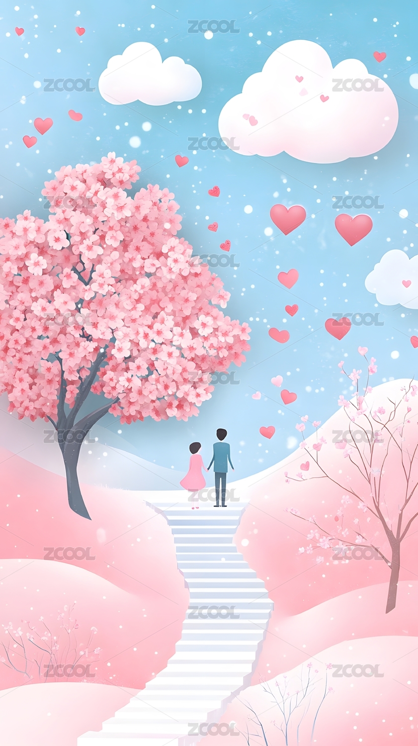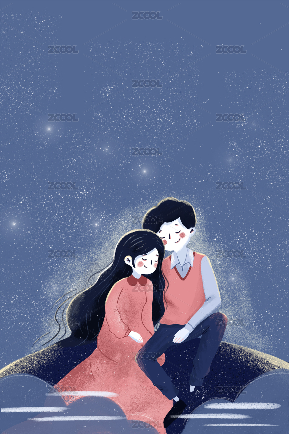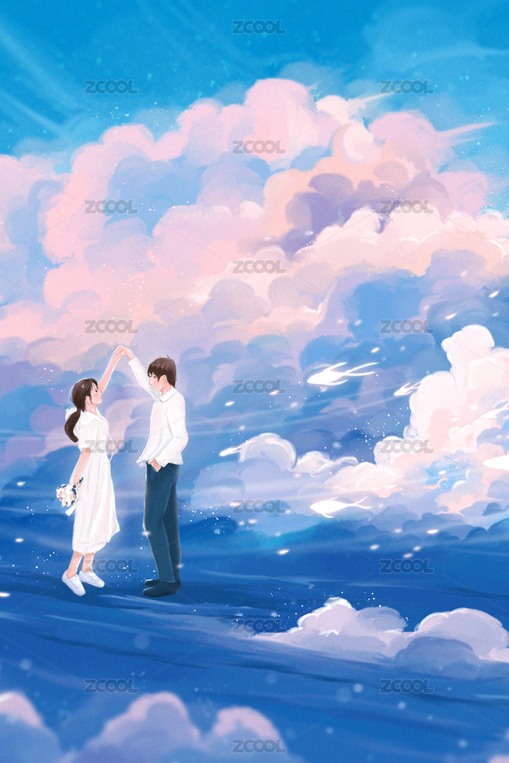唯美天空小清新情侣插画
