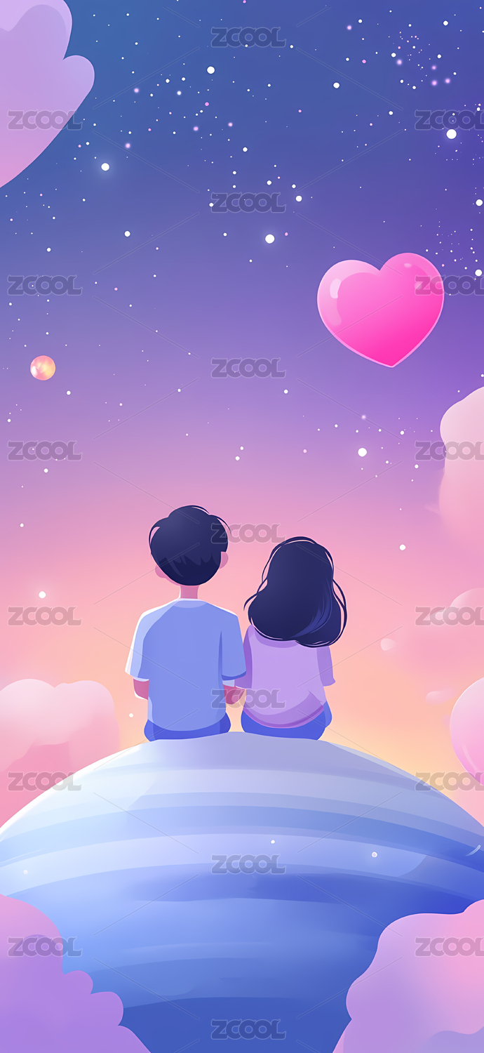 星球上的情侣与粉红爱心
