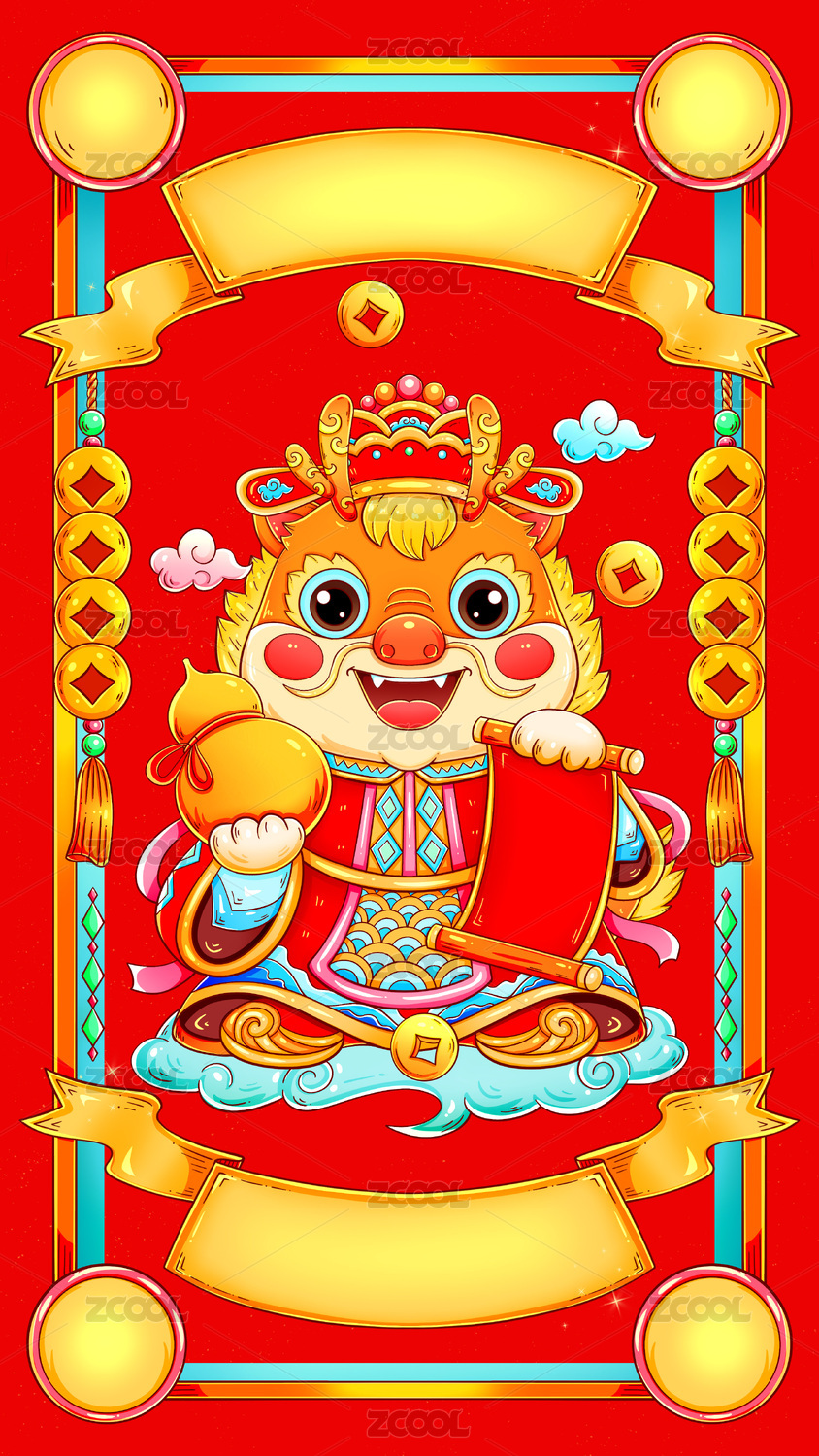 龙年生肖大吉大利红包封面背景矢量插画背景