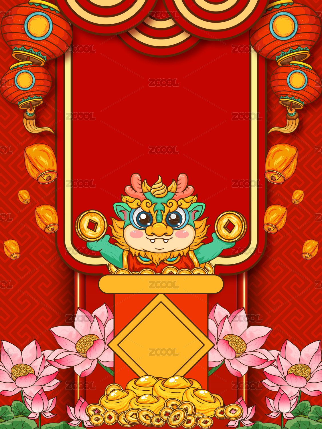 矢量龙年十二生肖新年春节小龙拜年封面背景
