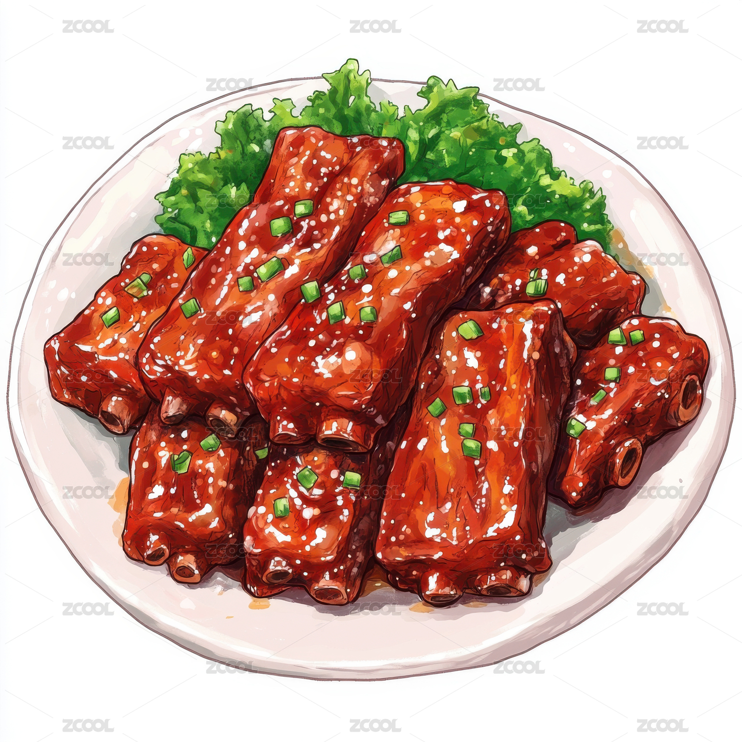 食物,美食,中国菜,熟食,插画,小吃,菜品,餐具,烹饪,糖醋排骨