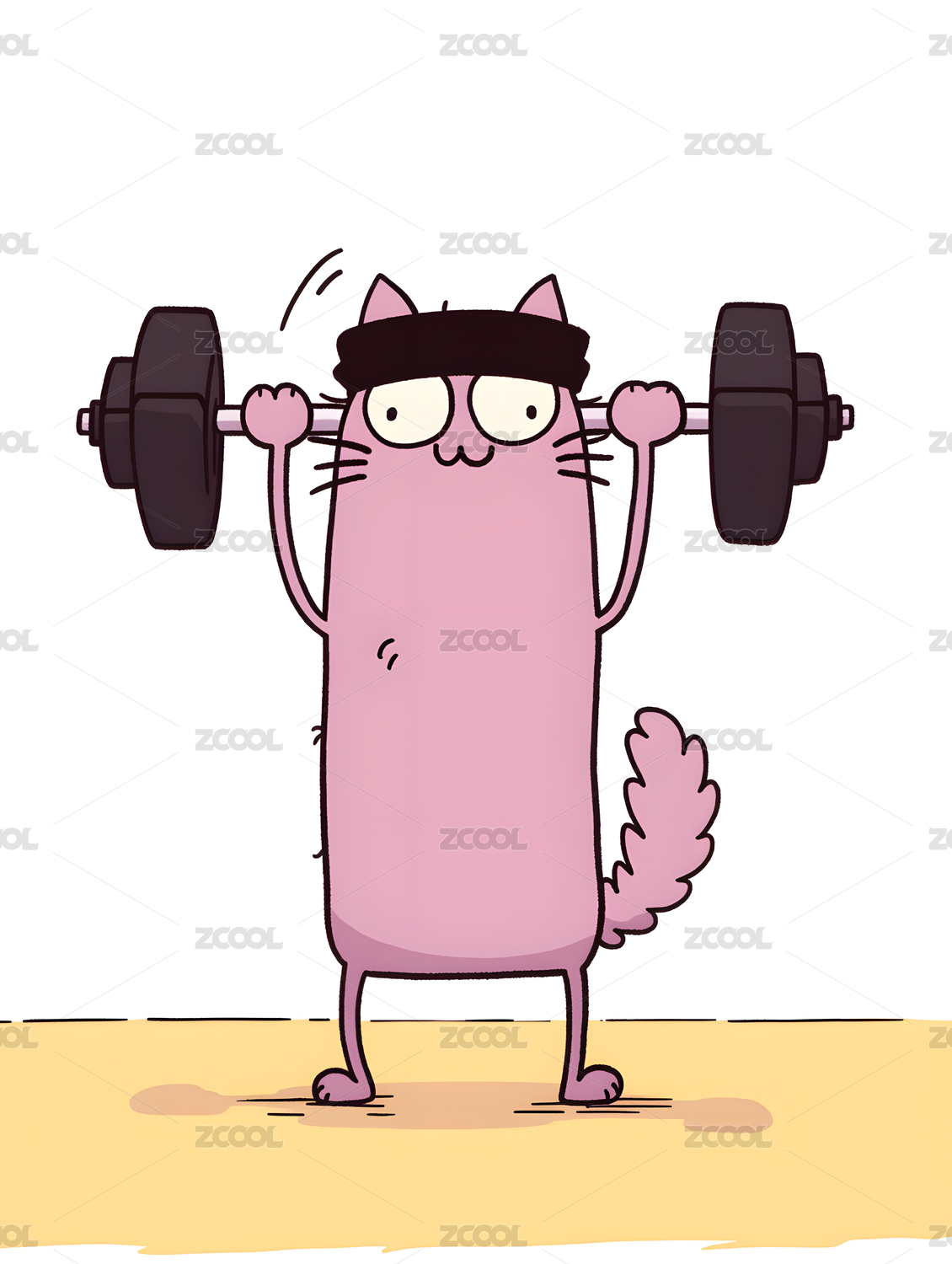 卡通简约风格呆萌动物驴举重杠铃插画印花