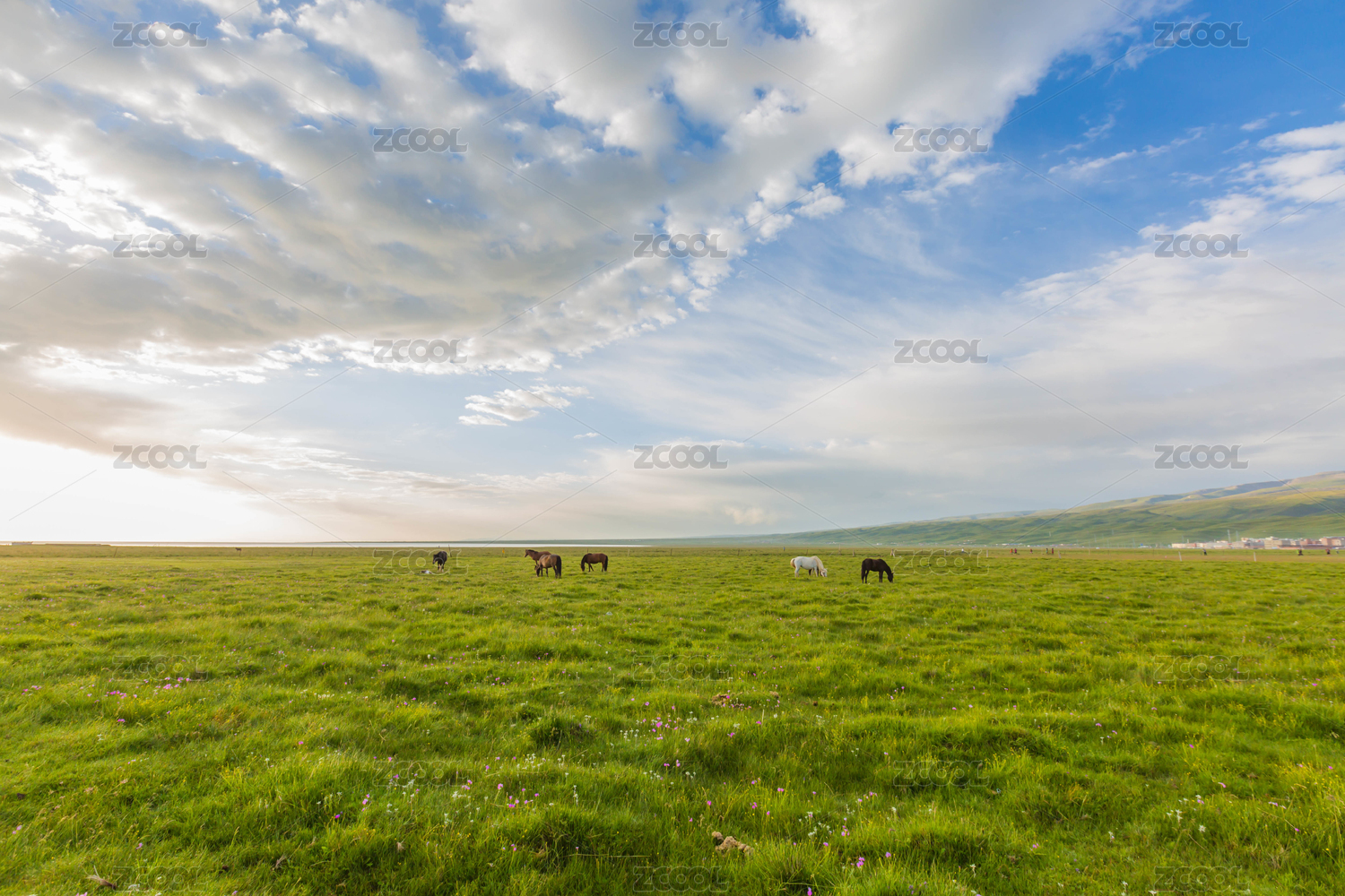 草原,草地,草场,农场,牧场,天空,多云,逆光,牛,畜牧