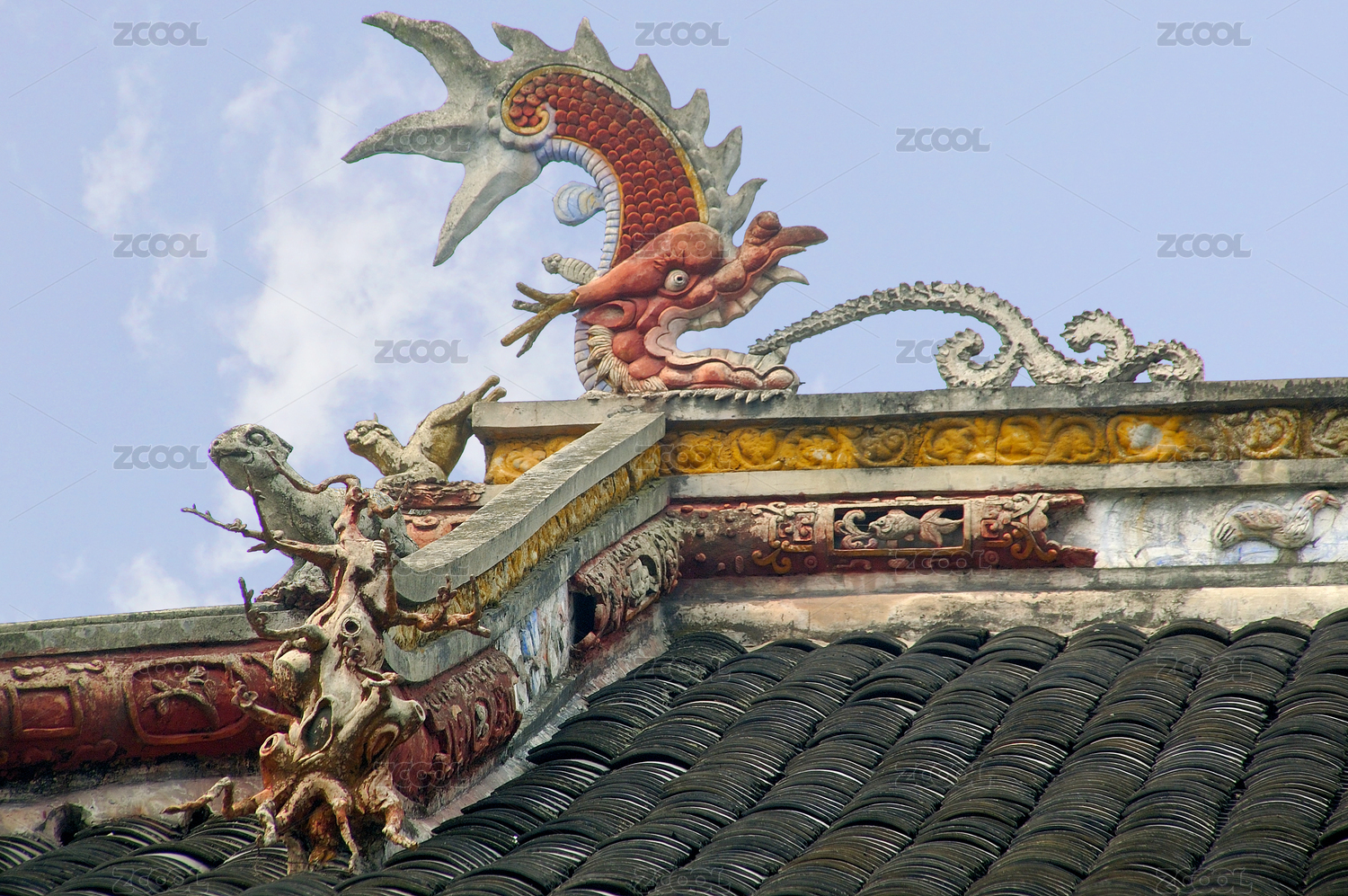 中国上海龙华寺正脊螭吻及装饰灰塑