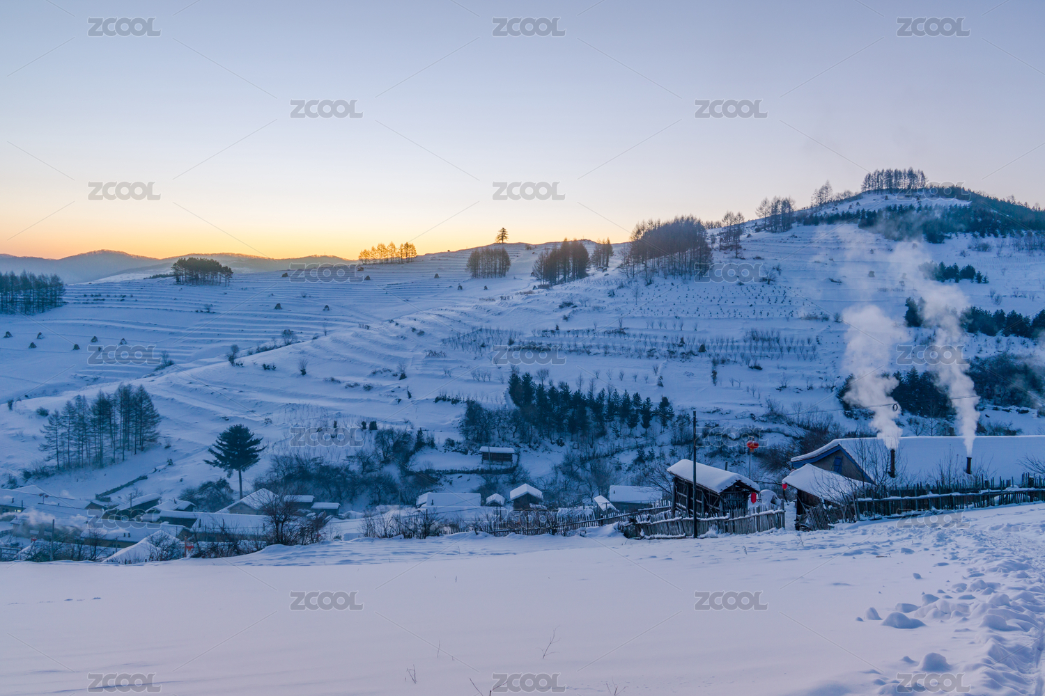 冬季中国乌兰布统坝上草原清晨日出雪景