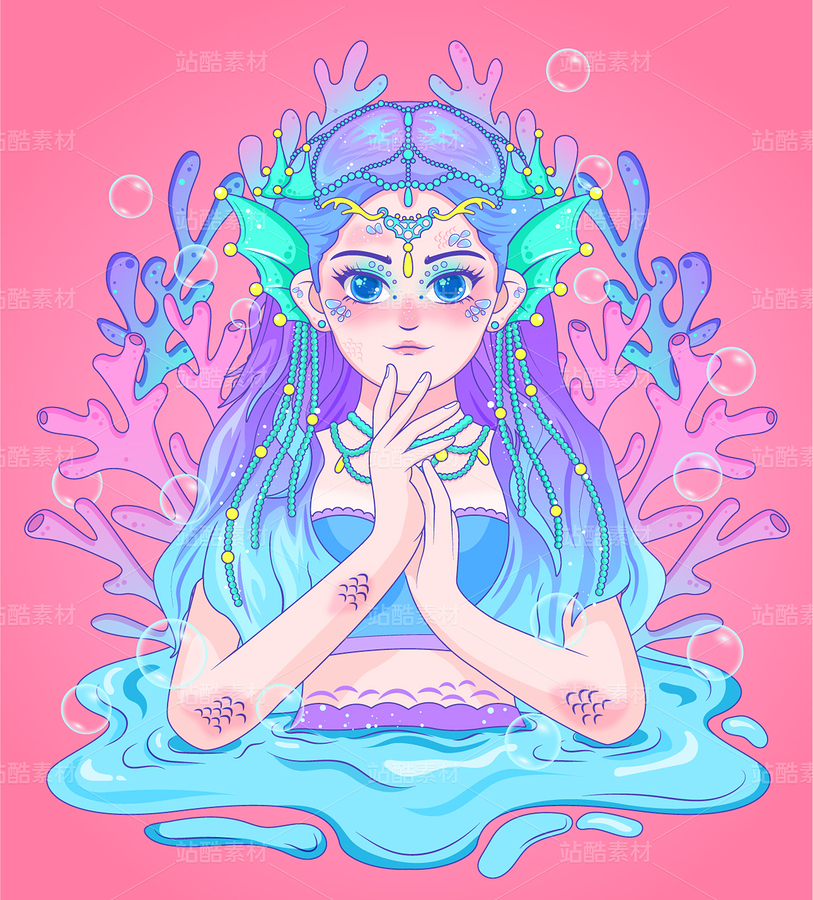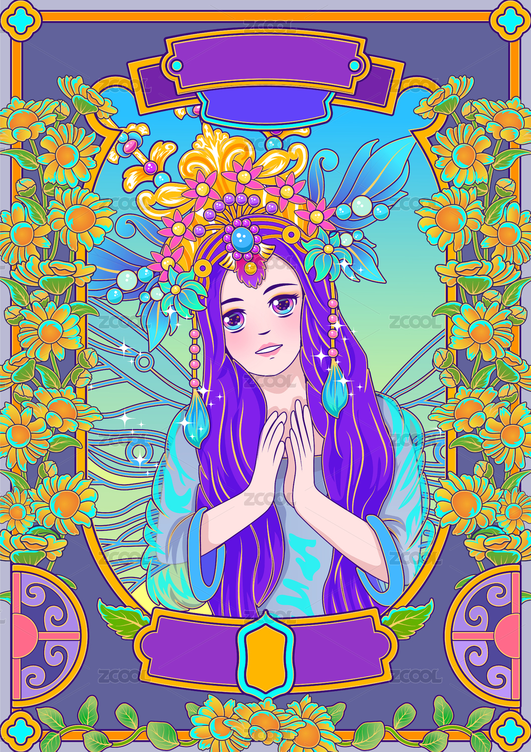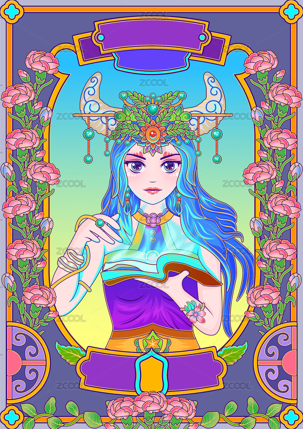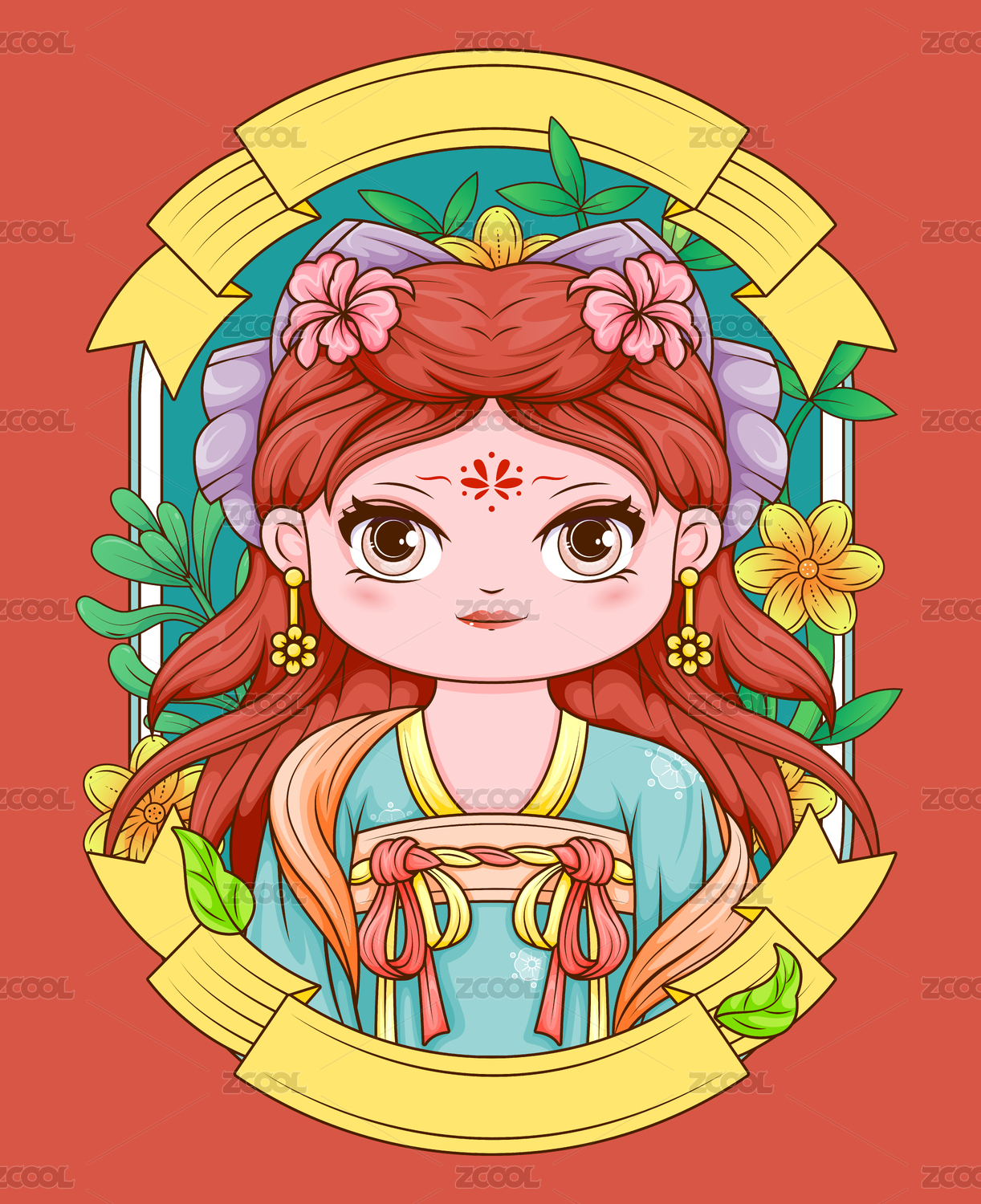 卡通二次元民族风带着头饰的长发精灵姑娘