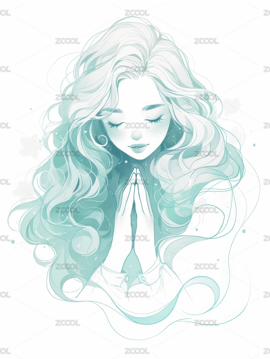 女生半身插画一张,可用作礼盒包装,帆布袋T恤图案,文创设计等