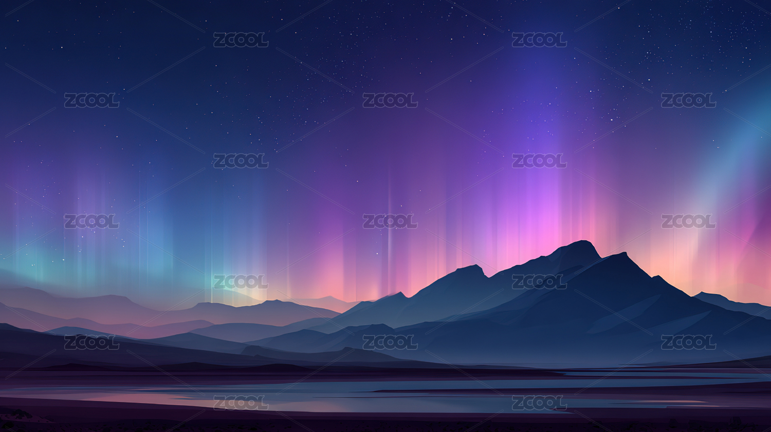 极光映照山峦夜景